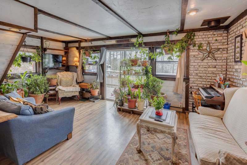 Discover the perfect blend of privacy, nature, and mountain living on over 6 serene acres in the sought-after Mountain Meadows Association. Tucked away in a quiet setting, this inviting property features a spacious deck overlooking a tranquil pond, offering an ideal spot for morning coffee, wildlife watching, or unwinding at sunset. Inside, you’ll find a warm and welcoming layout with 2 bedrooms plus a versatile flex room—perfect for guests, a home office, or studio space. A cozy wood stove provides charm and efficient heat through the colder months. With just a bit of polishing, this home offers wonderful potential to make it uniquely your own. Outdoor enthusiasts will love the location: enjoy shared common areas, plus nearby skiing and snowmobile trails that place year-round recreation right at your doorstep. Whether you're looking for a peaceful getaway or a full-time retreat, this property offers the space, setting, and possibilities to create something truly special.