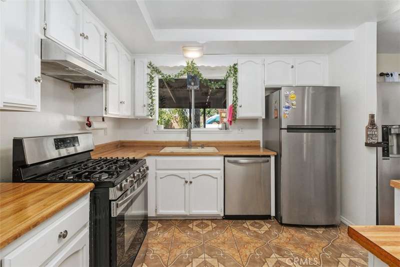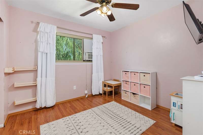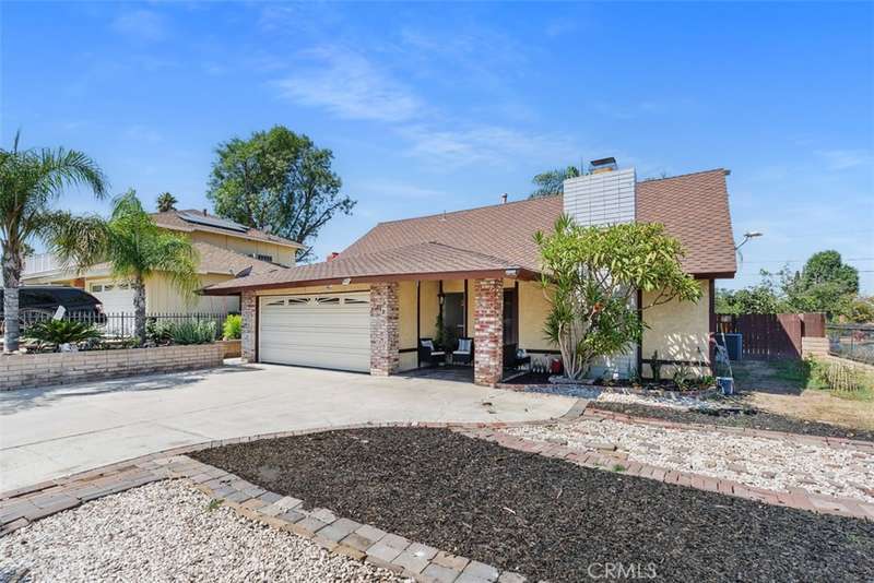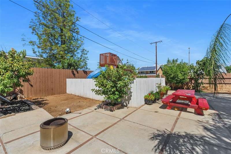 Two story home on a large corner lot enclosed, on one side and front, by a wrought iron fence and gate. Spacious back yard with a covered patio area that spans the width of the house, ideal for spending afternoons outdoors and entertaining friends and loved ones. There is a gated playground area that includes a slide and swings, plus a shed for extra storage. One side of the lot is lined with built in planters, perfect for your favorite flowers, plants, herbs or your own vegetable garden. You won't have a problem with parking. Two car garage plus an oversized driveway. The home offers 4 bedrooms, 2 bathrooms plus a large storage room that can be used for multiple purposes. One of the four bedrooms is located on the main level with direct access to the downstairs bathroom and French doors to the backyard area. The upstairs bathroom has recently been remodeled with updated vanity, mirror, light fixture, flooring and toilet.