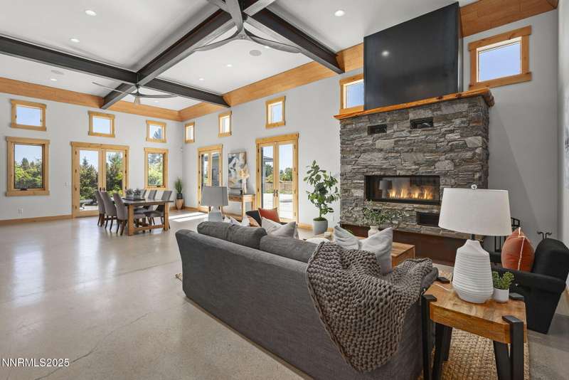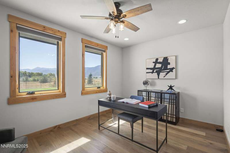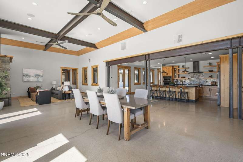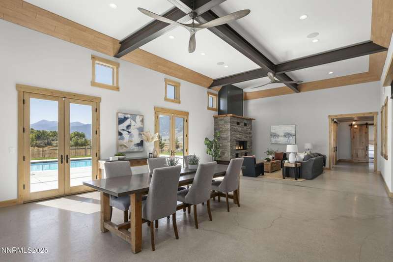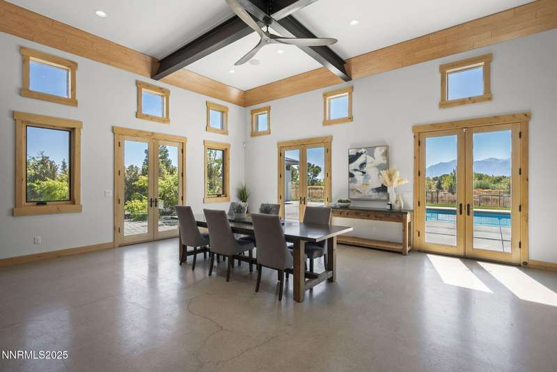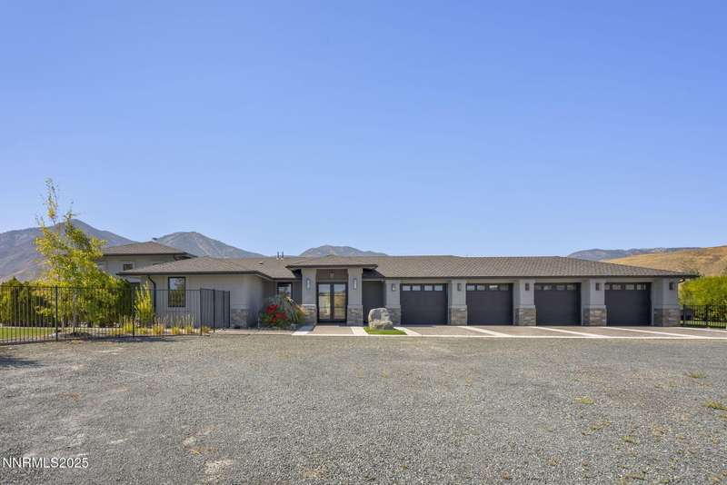Welcome to 2960 Oasis Springs Rd, a breathtaking 19-acre estate in the heart of Minden, NV, where luxury and wide-open serenity converge. This extraordinary property offers a rare combination of space, privacy, and panoramic Sierra Nevada views, creating a true sanctuary just minutes from town conveniences. The thoughtfully designed single-level residence features four spacious bedrooms and three-and-a-half bathrooms, blending comfort with elegance. Tall ceilings, expansive windows, and open living areas flood the home with natural light while framing dramatic mountain vistas at every turn. Highlights include a gourmet kitchen, dedicated office, cozy theater/bonus room, and a versatile gym/storage space—crafted to support both everyday living and special moments. A remarkable 9,800 sq. ft. detached building provides endless opportunities, whether for a car collection, workshop, or creative pursuits, ensuring this property adapts to your lifestyle. Step outside and embrace the outdoors: an inviting in-ground pool, covered patio, serene ponds, mature landscaping, and expansive grounds set the stage for relaxation and entertainment. Additional features—a chicken coop, dog run, and abundant parking—enhance both practicality and charm. From sweeping views to unmatched space, this estate is more than a home—it's a lifestyle. 2960 Oasis Springs Rd invites you to enjoy luxury, freedom, and endless horizons in one of Northern Nevada's most picturesque settings.