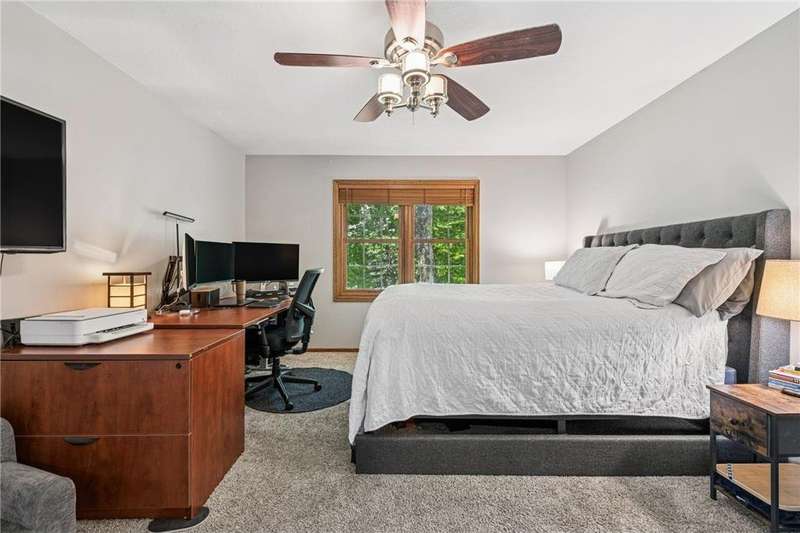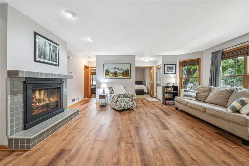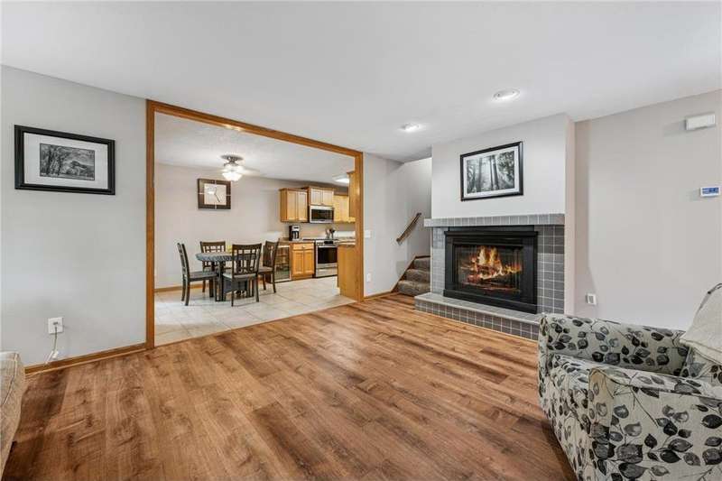Spacious End Unit Townhome with Main-Level Living & Bonus upstairs Suite! Beautifully maintained home featuring an open-concept Great Room with cozy fireplace and new LVT flooring. The updated Kitchen includes an informal Dining area and flows seamlessly into the main living space—perfect for entertaining or relaxing. The main level also offers two Bedrooms, including one with French doors, ideal as a home office or guest room, full Bathroom, and separate Laundry Room for added convenience. Upstairs, a private Primary Suite awaits with a spacious Bedroom, a stunning Bath, and abundant storage—perfect for guests or your personal retreat. Bright natural light fills the home, and the generous yard space offers room to relax or play. Located in demand neighborhood close to retail, grocery stores, parks, and Crystal Lake with its beach and picnic areas. This home blends comfort and convenience in a truly special setting.