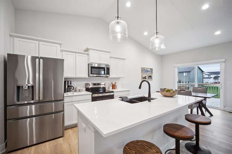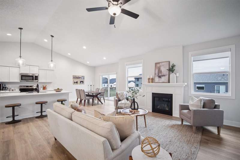 Welcome to Prairie Rose Lane in Waukeea like-new Yuma Expanded ranch by Jerrys Homes, offering both comfort and functionality. This 3-bedroom, 2-bath home features an open-concept layout with vaulted ceilings in the great room, LVP flooring throughout, and a gas fireplace that serves as a perfect focal point in the main living area. The kitchen includes white cabinetry, a large center island, walk-in pantry, and a practical drop zone as you enter from the garage. The spacious daylight basement is ready to be finished, already stubbed for a bathroom and offering endless potential. Youll also enjoy a 3-car garage and a timeless exterior with white siding, brick accents, and black-framed windows that enhance the homes curb appeal. Located in the Waukee School District and close to parks, trails, shopping, and diningthis home checks all the boxes for modern living.