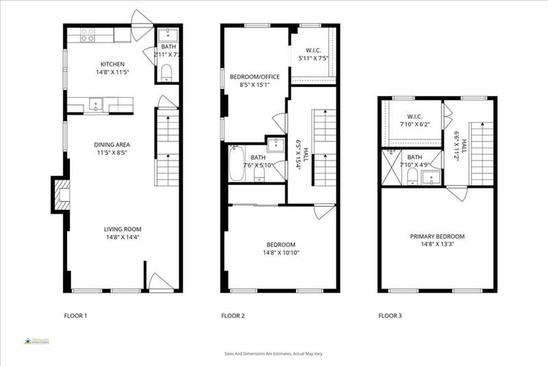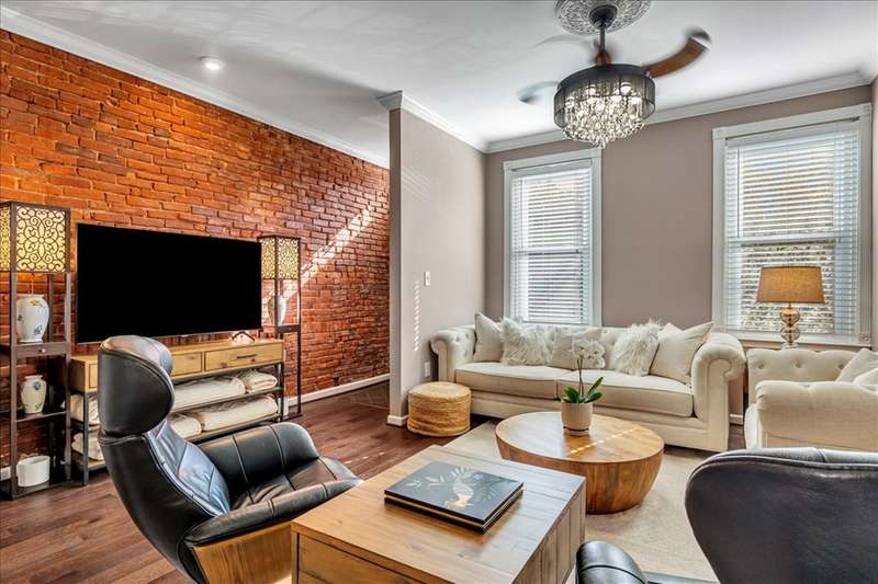 Rarely available -Standalone home in Historic Midtown Brandywine! Brick sidewalks, landscape beds full of seasonal plants and a freshly painted exterior elevates the curb appeal of this 3BD, 2.5BA three-story stunner full of chic finishes & original character. Comprehensively upgraded by the current owner, this home showcases rich, new hardwood floors that flow seamlessly throughout, a renovated crisp white kitchen with quartz countertops and sleek white appliances and totally redesigned bathrooms with modern finishes. The combined living and dining area is anchored by an exposed brick wall and a decorative fireplace with stylish tilework and open sightlines that connect your living space to the kitchen. A guest powder room completes this level. Off the kitchen you'll find your oasis - a fully enclosed rear garden with an impressive paver patio. Upstairs, the second floor offers two generously sized bedrooms, each with ample closet space, sharing a well-appointed full hall bath. The third floor is dedicated to the private primary suite, featuring a beautifully renovated full bath and a fabulous walk-in closet. The unfinished basement offers tremendous storage. All this, just steps from Brandywine River/Park, walking trails, parks, annual festivals, restaurants, plus convenient access to downtown Wilmington & I-95. A sophisticated city retreat you’ll love coming home to.