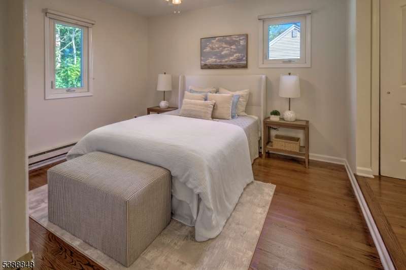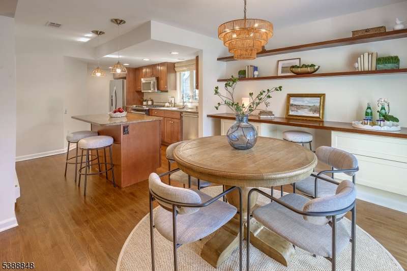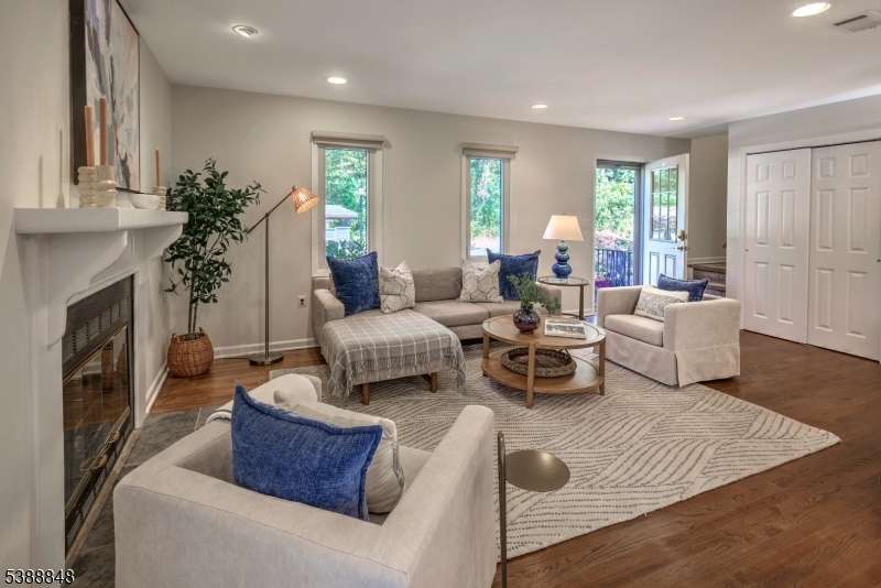 Welcome to this beautifully updated townhouse with 3 bedrooms, 2.1 baths, finished basement and 2 car garage. Move right into this freshly painted spacious home with gleaming hardwood floors throughout. The kitchen with stainless steel appliances, granite counters and center island breakfast bar flows into a dining area with built-in side board and floating shelving. Sliding doors lead to a deck. The wood burning fireplace is the focal point of the living room. The primary bedroom offers ample closets in the dressing room area and en suite bath. The updated hall bath services the 2 spacious other bedrooms. The lower level rec room is a welcoming place to hang out or get laundry done. New washer/dryer (2023), and newer hot water, AC and furnace (2020). The location is ideal-close to schools parks and center of town. Quick access to I287, I78 and Newark airport. Bernardsville is a stop on the train to NYC..