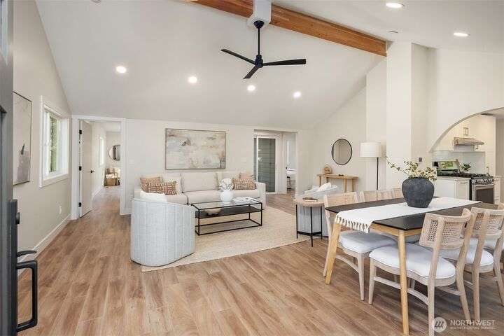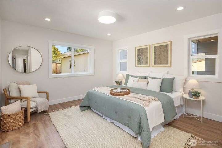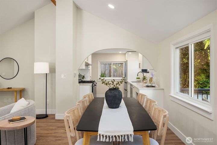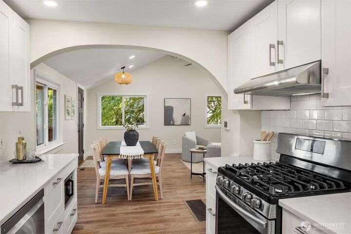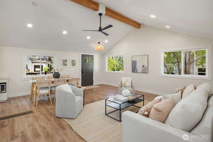 Freshly reimagined Cape Cod with nearly 500 sq. ft. of brand new living space! This 3-bed, 1.75-bath home blends timeless charm with modern updates & thoughtful design. Step inside to vaulted ceilings in the great room, a bright open layout perfect for entertaining, & improvements including new flooring, windows, & fresh interior paint throughout. The primary suite is a true retreat, featuring chic designer finishes & privacy. Outside, both front & back yards are level & newly landscaped. The oversized detached garage provides endless potential; ideal for storage, hobbies, or a future DADU. All this in a prime location near U-Village, UW, Seattle Children’s, local restaurants & coffee shops, Burke-Gilman Trail, and transit!