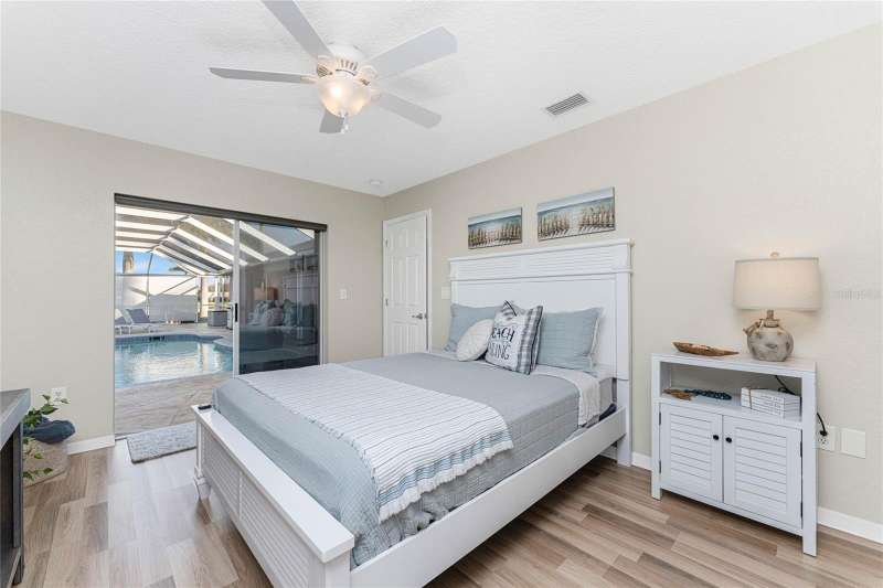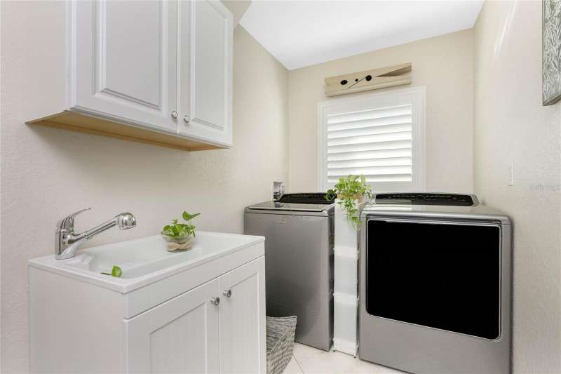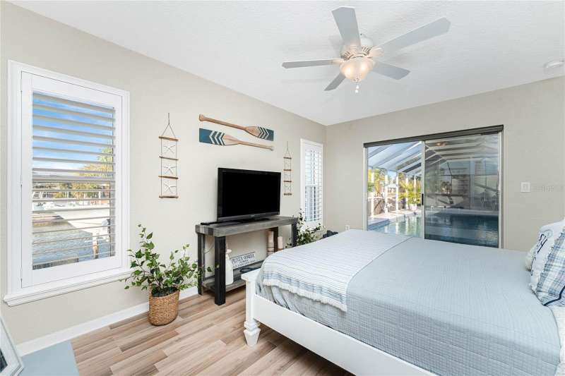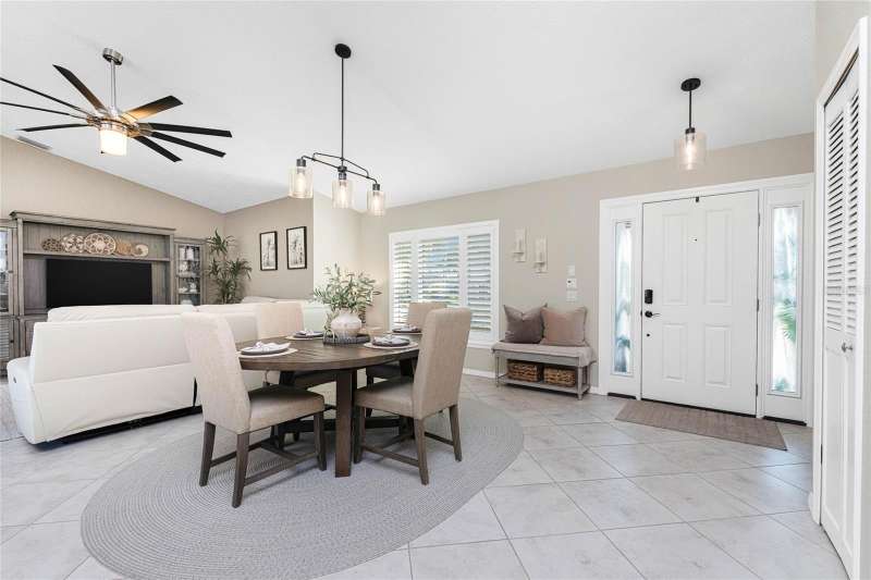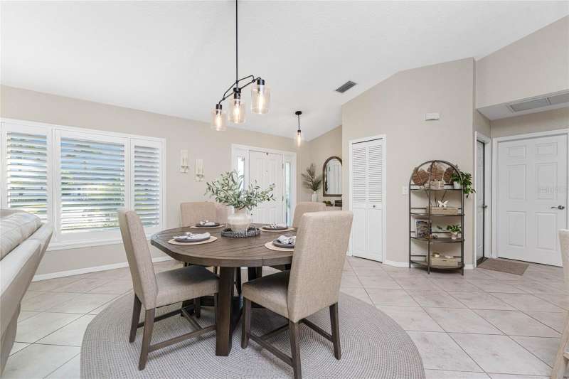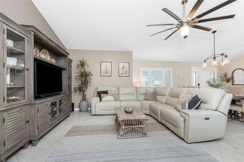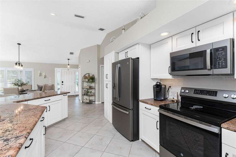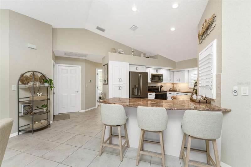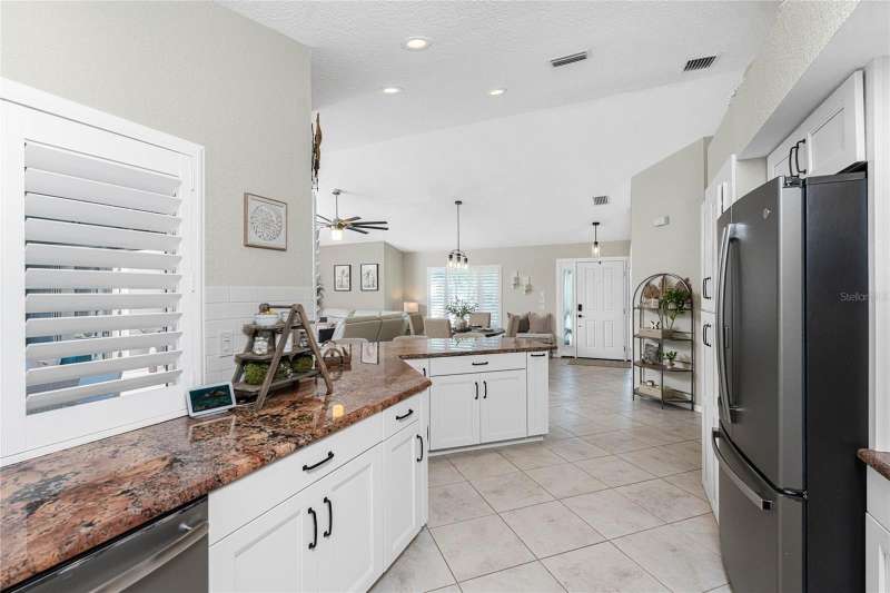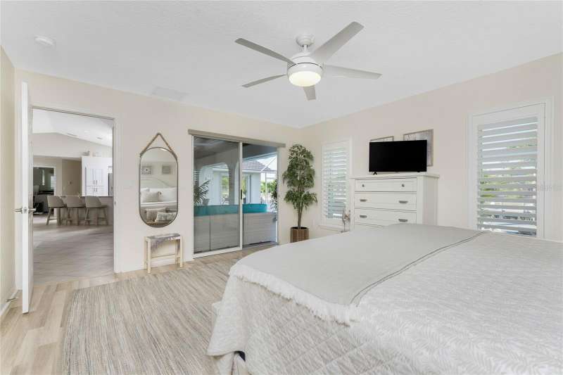 A handsome circular, paver driveway welcomes you to your very own sanctuary in paradise. You will love how smartly this 3 bedroom, 2 bath home has been updated. The completely open floor plan in the living areas really lends itself to entertaining, and the split bedroom floor plan gives the primary bedroom privacy from your guests that stay overnight. The guest wing boast 2 roomy bedrooms, each with double closets, ceiling fans and plantation shutters. One of them has power blinds on a slider that gives access to the pool. The great room tile flooring is laid on the diagonal to make it truly unique and the vaulted ceiling makes it light and airy. The 12 foot slider disappears into the wall for a seamless entertaining space that spills from the great room to the outdoor lanai with it’s tongue and groove wood ceiling, 6 person hot tub in the screened pool area. The nicely updated kitchen has lustrous, granite counters, smart looking, soft close cabinets, and a big deep sink. The new (2025) range, microwave and fridge, pass through window to the lanai and convenient breakfast bar complete the user friendly kitchen. The generously sized laundry room has the 2023 washer & dryer, a sink and convenient, built in ironing board. The front windows are impact rated, the side windows have accordion shutters and the lanai has motorized, kevlar shields for full hurricane protection. The 60 foot concrete dock, 111 foot (city maintained) seawall and 10,000 lb boat lift just 12 minutes to the Fisherman’s Village inlet is the ultimate attraction for the boater and fisherman. A boat in the backyard is the reason most of us move to Punta Gorda Isles. An optional civic association (PGICA) has a sub-club for nearly every interest (including 4 boat clubs!) and is an amazing way to meet like minded, new friends. Our charming town has a historic district of well maintained, vintage homes with brick streets, multiple waterfront parks, 2 free boat ramps, a 24 court world class pickleball complex called PicklePlex, a dog park, wildlife center, botanical garden, a history park with an artisan village and Sunday farmer’s market next to the new library. A downtown with shops, many great restaurants a Saturday farmer’s market. Fisherman’s Village draws visitors from miles around and has even more shops and restaurants. Sunseeker Resort is just over the bridge so you cannot be bored here unless you want to be! We even have our own airport where Allegiant jets take off for over 40 destinations! If you have been looking for your paradise, and you found Punta Gorda, you are lucky indeed!
