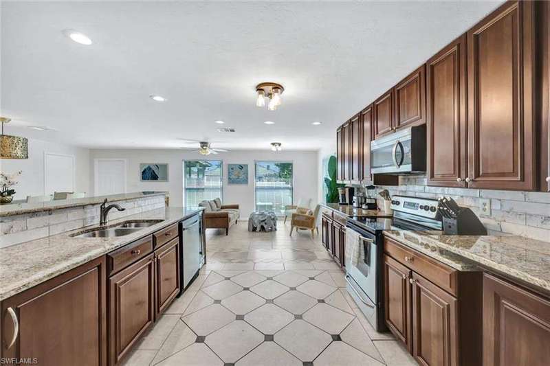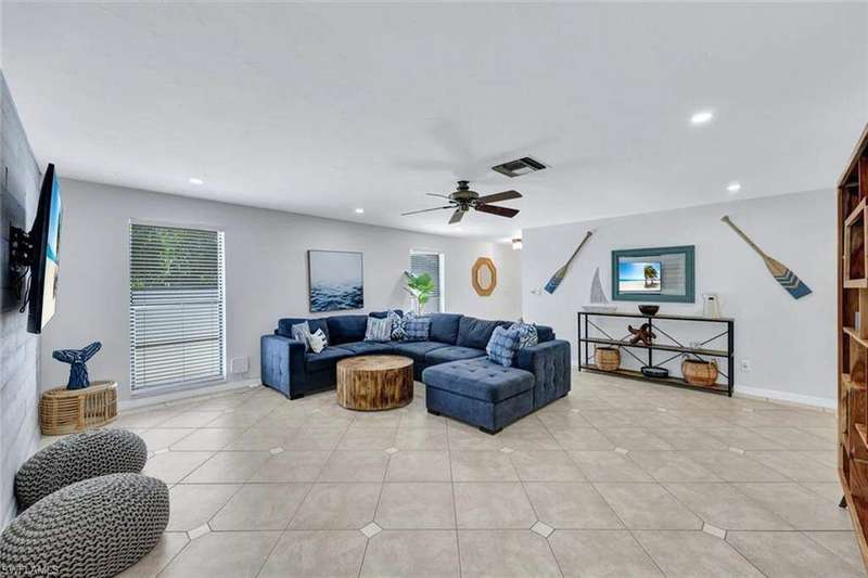 Looking for a spacious coastal atmosphere? Look no further! 3 generously sized bedrooms plus a den, providing plenty of space to spread out, room for a home office too. Enjoy living room plus family room, open kitchen with expansive breakfast bar perfect for entertaining! The open-concept kitchen, complete with stainless steel appliances and granite countertops, flows seamlessly into the living spaces, making it the heart of the home. New A/C, new water heater, freshly painted and new lighting. Fenced in back yard! Just a bike ride to white sugar sand beaches plus a plethora casual and fine dining, movie theaters, La Fitness, Whole Foods, Trader's Joe, The Ritz and luxury shopping at Mercato. This is the Naples lifestyle you have been looking for! Move in today!