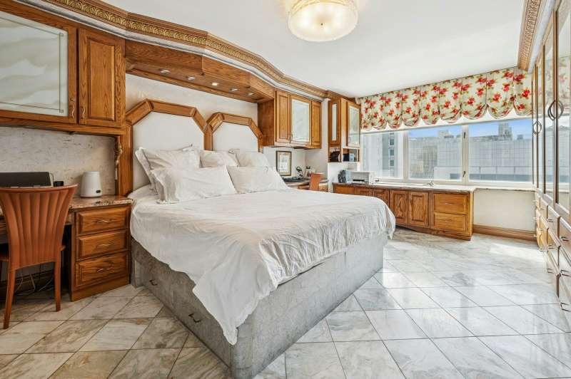 The primary suite is a masterclass in functionality and style with a built-in king platform bed, extensive custom storage, integrated desks, and a spa-quality en-suite bath. The second bedroom is equally refined with a built-in bed, workstation, and abundant natural light.