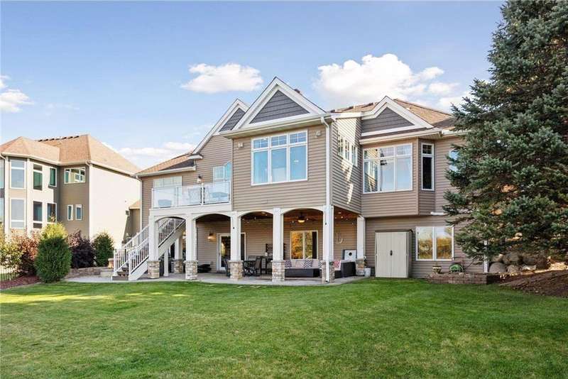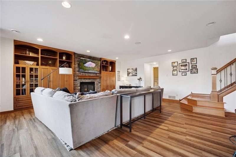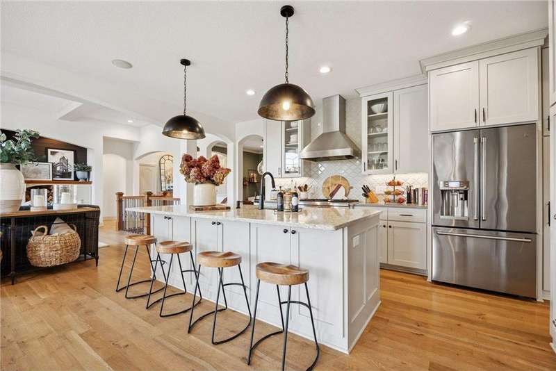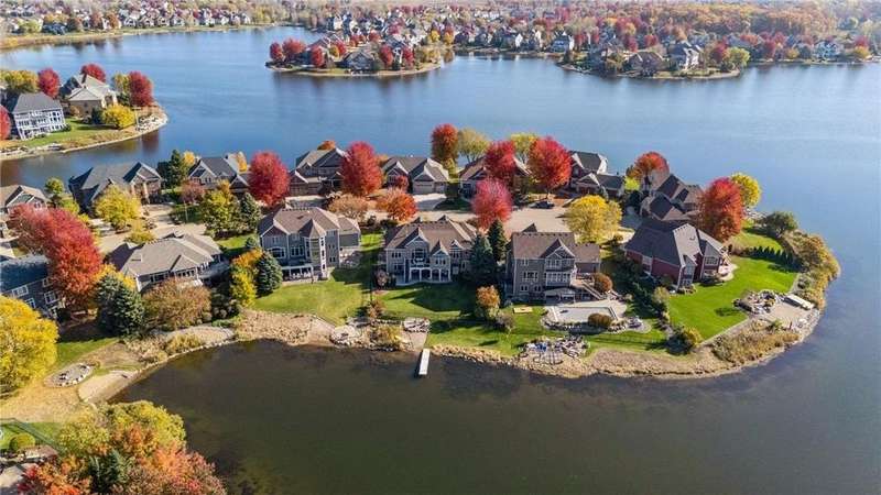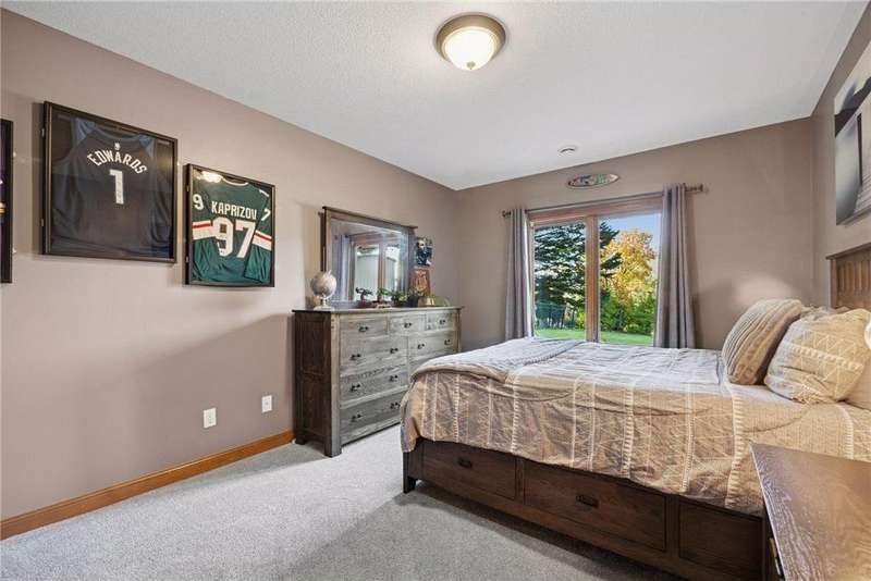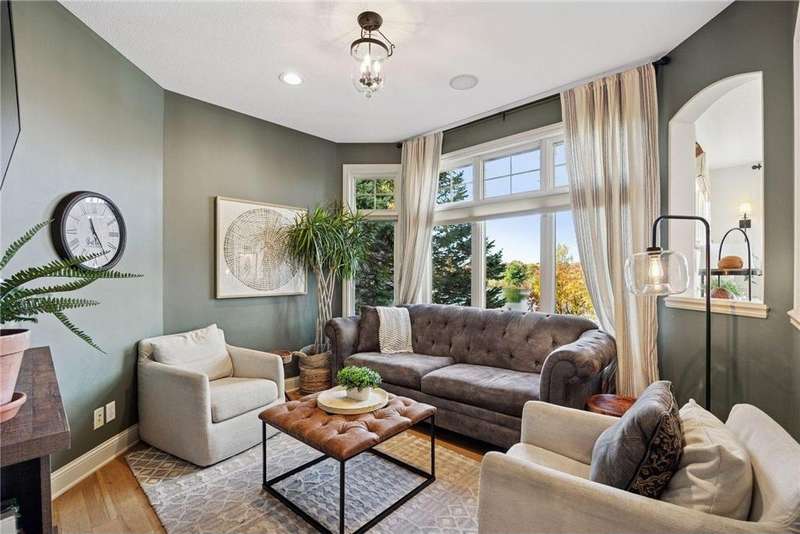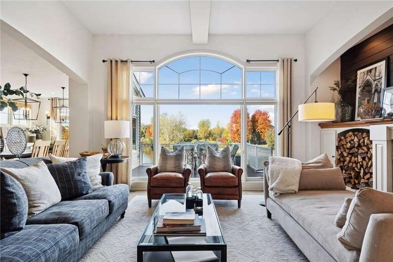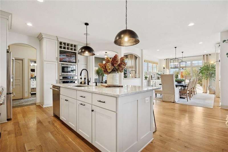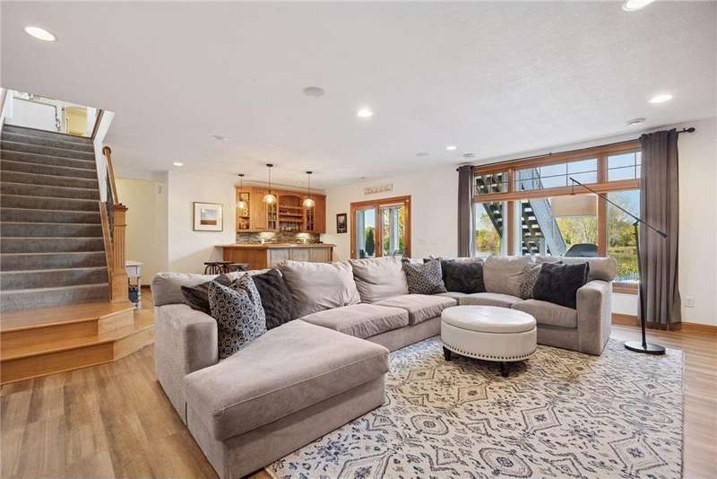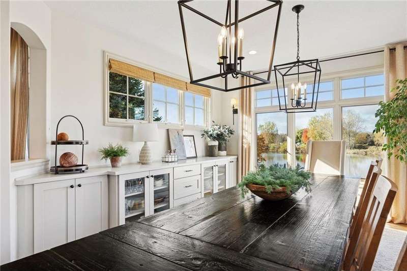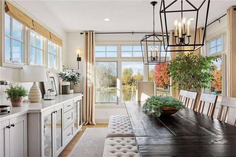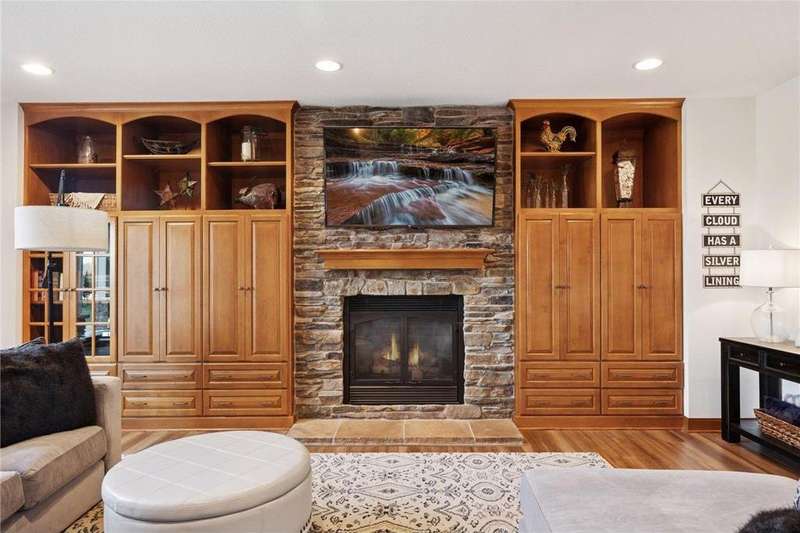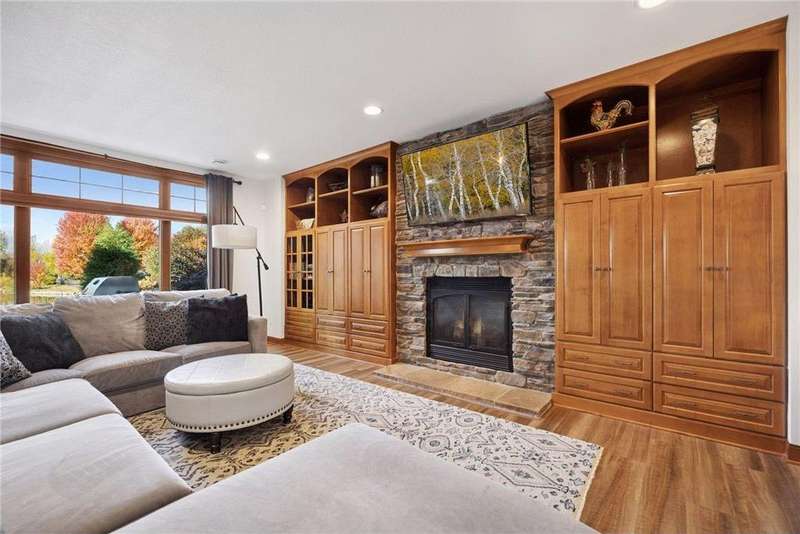 Nestled in the serene enclave of The Lakes at Northwest Shores, the home offers an unparalleled blend of elegance, comfort, and natural beauty. This former Hanson Builders model home, built in 2004, spans an expansive 3,574 square feet on a generous 0.36-acre cul-de-sac lot, with 4 beds, 4 baths, and a host of upscale recent upgrades that make it truly stand out. Step inside to an open-concept main level flooded with natural light, where a cozy gas fireplace anchors the living space, perfect for chilly Minnesota evenings. The gourmet kitchen dazzles with stainless steel appliances and granite counters and flows seamlessly into a sunlit dining area. Retreat to the luxurious primary suite, featuring a spa-like en-suite bath, or unwind in one of the three additional bedrooms, each with ample closet space. Main floor laundry room lets you take care of the chores easily without extra steps to the lower level. Outside, your private oasis awaits with breathtaking western exposure and sunsets overlooking the tranquil Sunrise Lake and a quiet city park. Enjoy 84 feet of pristine shoreline, a beautifully landscaped yard, and an inviting firepit—ideal for summer barbecues or stargazing. The exterior blends timeless charm with durable stone, stucco, and brick accents, complemented by a 3-car attached garage for effortless storage. Located in Blaine's sought-after Northwest Shores, you're minutes from top-rated schools, shopping, and easy access to 35W for a quick commute to Minneapolis or St. Paul. Embrace lakeside living at its finest—where every day feels like a vacation up north.