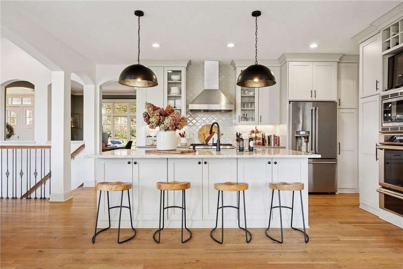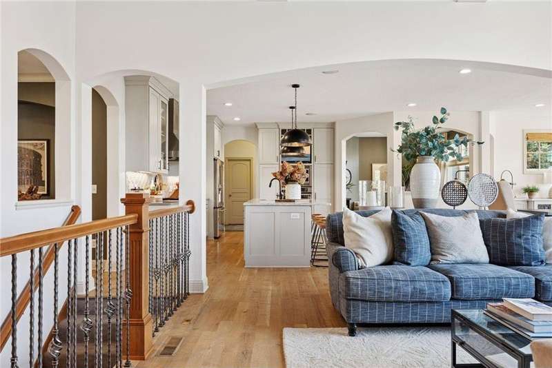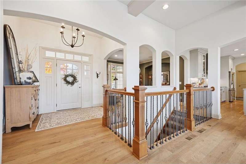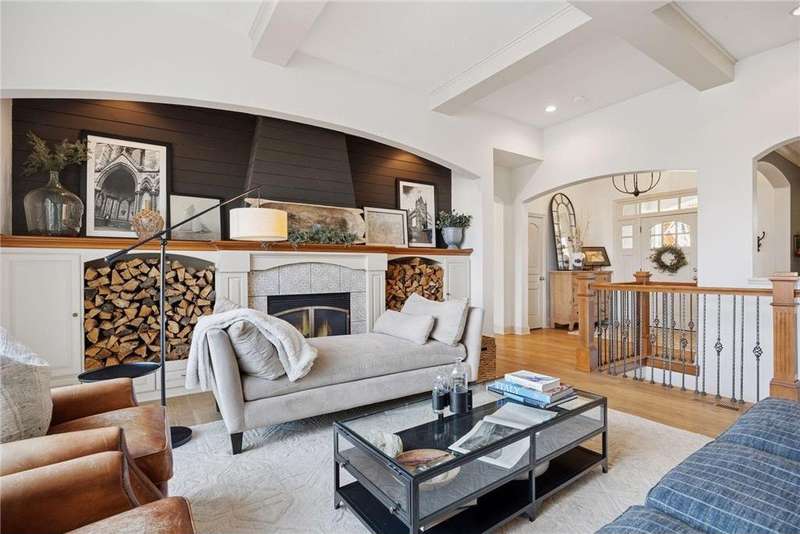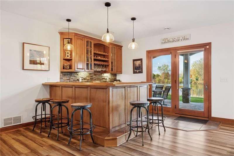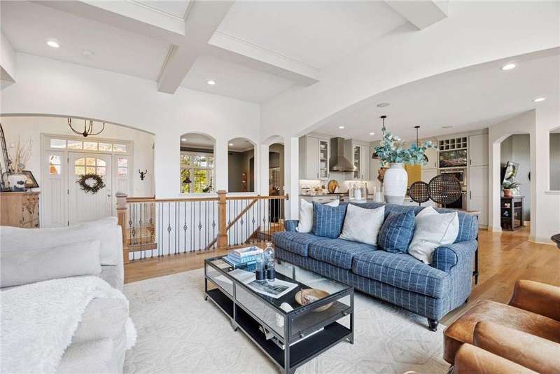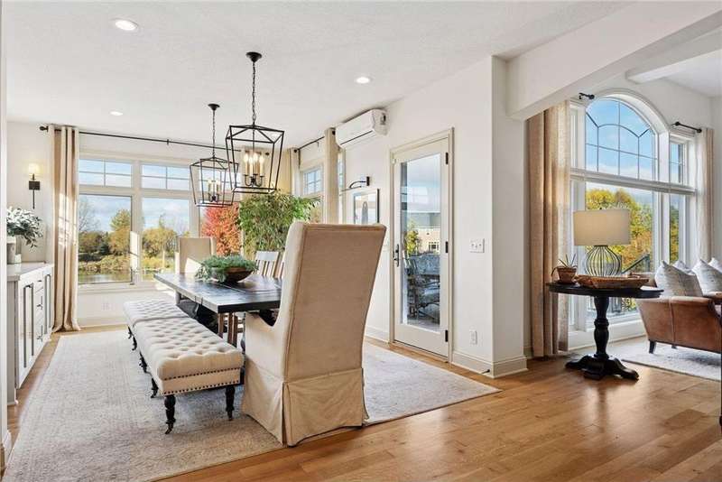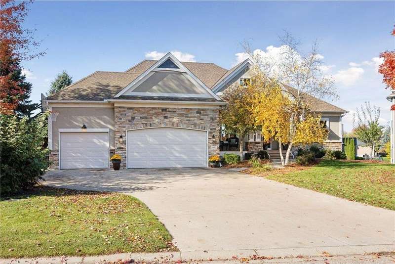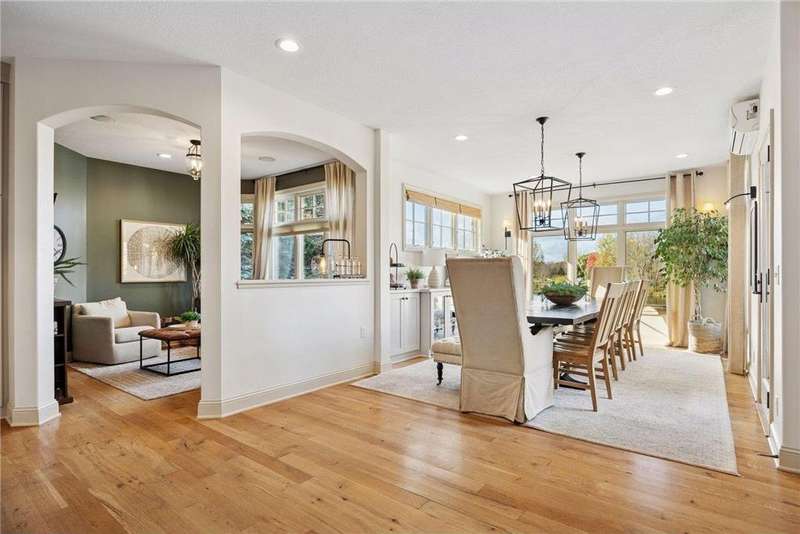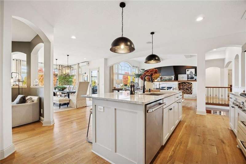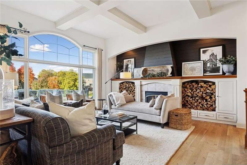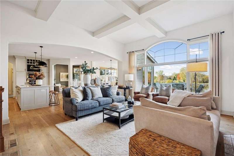 Nestled in the serene enclave of The Lakes at Northwest Shores, the home offers an unparalleled blend of elegance, comfort, and natural beauty. This former Hanson Builders model home, built in 2004, spans an expansive 3,574 square feet on a generous 0.36-acre cul-de-sac lot, with 4 beds, 4 baths, and a host of upscale recent upgrades that make it truly stand out. Step inside to an open-concept main level flooded with natural light, where a cozy gas fireplace anchors the living space, perfect for chilly Minnesota evenings. The gourmet kitchen dazzles with stainless steel appliances and granite counters and flows seamlessly into a sunlit dining area. Retreat to the luxurious primary suite, featuring a spa-like en-suite bath, or unwind in one of the three additional bedrooms, each with ample closet space. Main floor laundry room lets you take care of the chores easily without extra steps to the lower level. Outside, your private oasis awaits with breathtaking western exposure and sunsets overlooking the tranquil Sunrise Lake and a quiet city park. Enjoy 84 feet of pristine shoreline, a beautifully landscaped yard, and an inviting firepit—ideal for summer barbecues or stargazing. The exterior blends timeless charm with durable stone, stucco, and brick accents, complemented by a 3-car attached garage for effortless storage. Located in Blaine's sought-after Northwest Shores, you're minutes from top-rated schools, shopping, and easy access to 35W for a quick commute to Minneapolis or St. Paul. Embrace lakeside living at its finest—where every day feels like a vacation up north.
