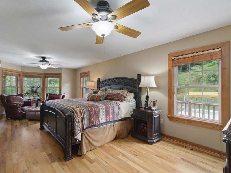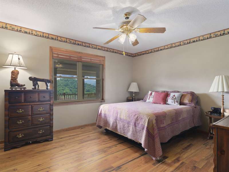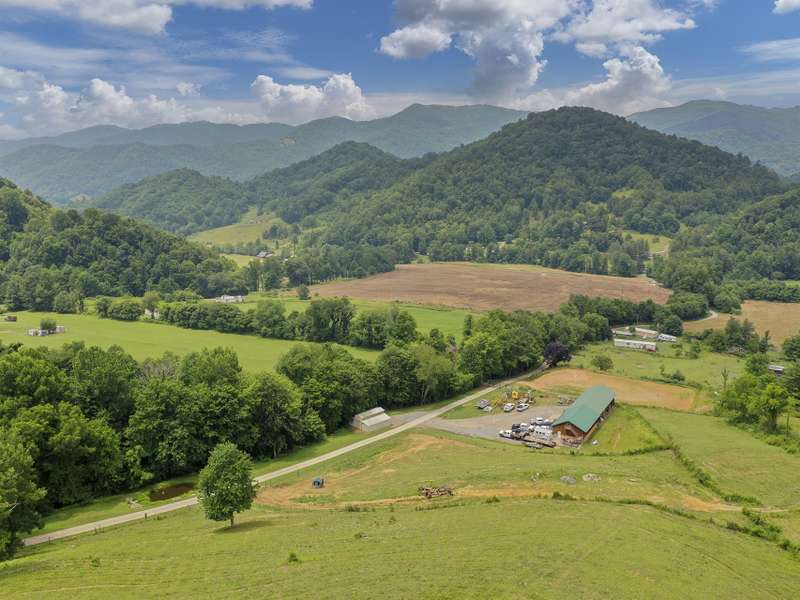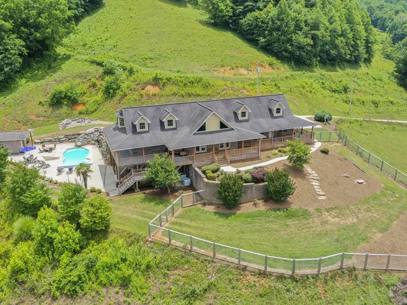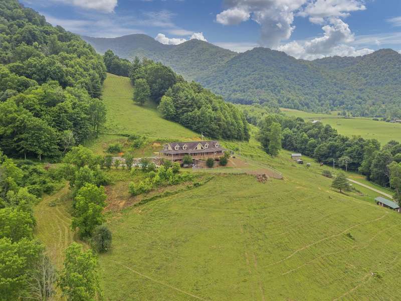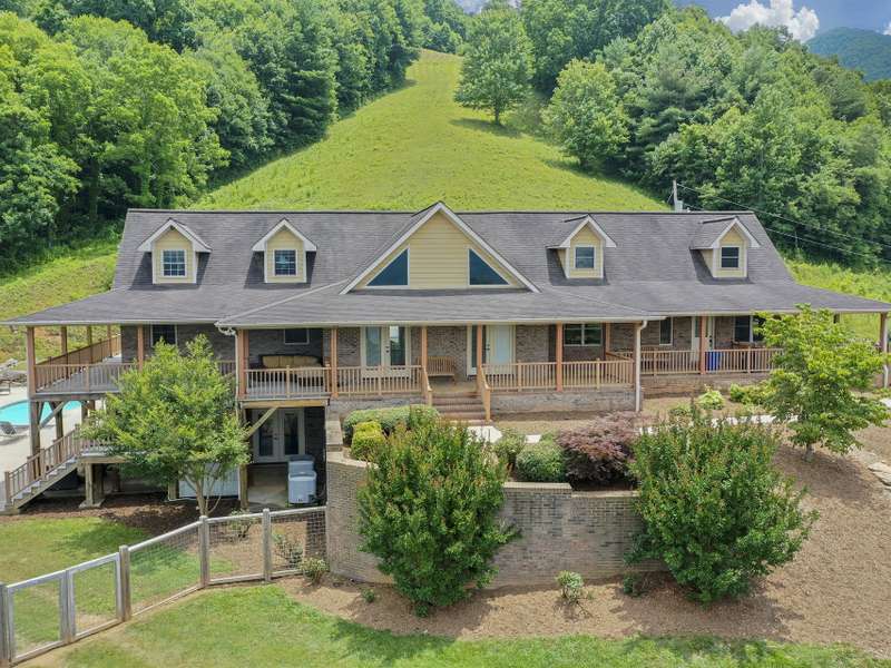 Atop 56+ picturesque acres in Fines Creek, this expansive estate offers unparalleled amenities. Boasting long-range views, an in-ground saltwater pool w/a cascading waterfall, an outdoor firepit, fenced pastures, a 3-bay detached garage w/a tractor shed, & private trails leading to a nearby creek, the property truly has it all. The traditional brick home was vastly expanded in 2007, featuring a grand foyer, a 2-story great room w/vaulted ceilings & a beautiful fireplace, a primary suite w/a gas fireplace, a bay window, a granite double vanity, a jetted tub, & a large walk-in shower, as well as 2 large BR suites on the upper level & an updated laundry room. The original section boasts 1 BR/1 bath on the main level, + a bonus room & bath upstairs, a dining room w/vaulted ceilings, a loft, and a kitchen equipped w/granite countertops, like-new appliances, a wine cooler, and a walk-in pantry. The fully-finished basement w/a full bath and a rec room flows effortlessly out to the pool deck.