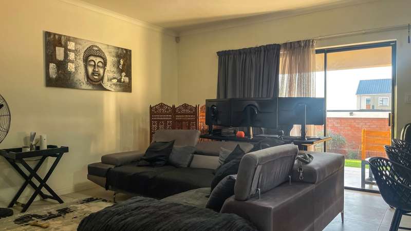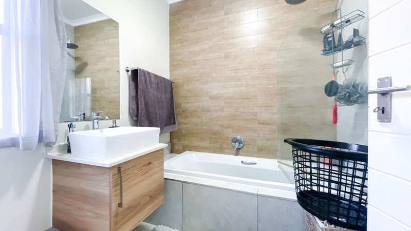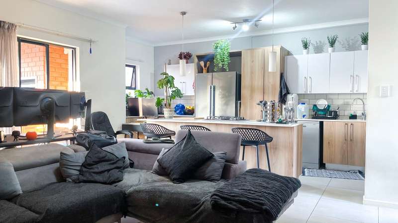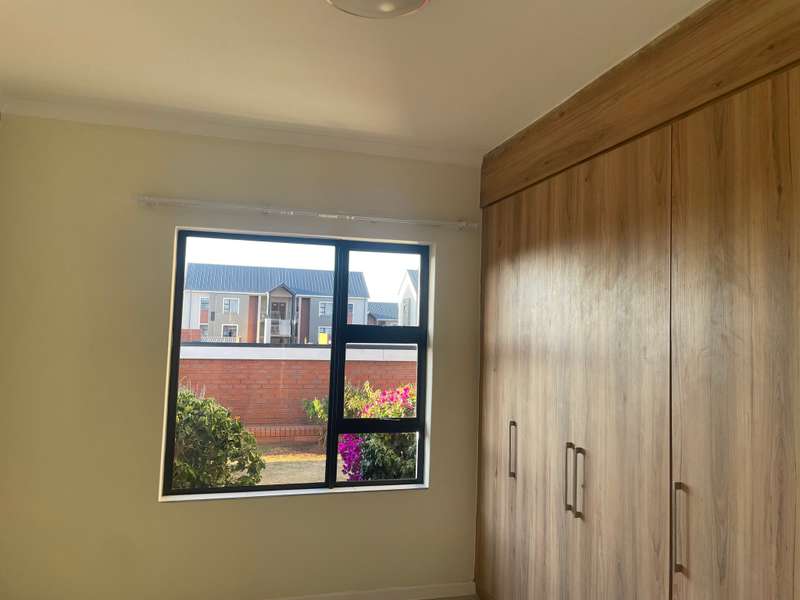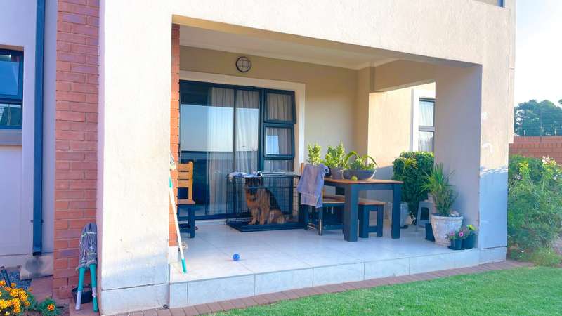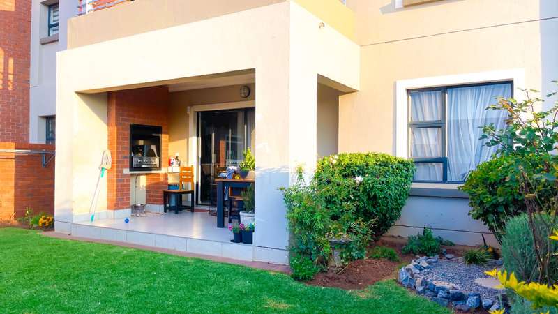 2 bedroom 2 bathroom double garage ground floor apartment for sale in Cherry Blossom Modern 2-Bedroom Apartment with in Golden Fields Estate. This stunning 2-bedroom, 2-bathroom apartment with two garages offers a perfect blend of contemporary design, comfort, and practicality. With a 5KW inverter, essential appliances like the geyser and automated garage remain functional during load-shedding, ensuring uninterrupted electricity supply. Both bedrooms feature built-in cupboards. The main bedroom includes an en-suite bathroom with a shower, toilet, and double basin, while the second bedroom is serviced by a full separate bathroom. Open-plan living area filled with natural light Stylish kitchen with a separate scullery and walk-in pantry Open dining area featuring a built-in braai on the Patio ideal for entertaining Sliding doors leading to a large, private garden, perfect for outdoor activities Features in the Estate: - Braai areas - Swimming pool - Beautiful gardens - 24hr Security GOLDEN FIELDS ESTATE Golden Fields Estate is a minute away from popular Midstream, located between Heritage Hill and Candlewoods Estate in Centurion. It has been designed to embrace, compliment and capture aesthetically the feeling and atmosphere of the area with a modern twist. This Estate offers luxury, upmarket living in a secure environment and is located within minutes of the N1, major shopping centers, Centurion Gautrain station, excellent schools and an array of area activities. The new Mall of Africa is a mere 13 minutes away. Come and experience this Modern lifestyle today.