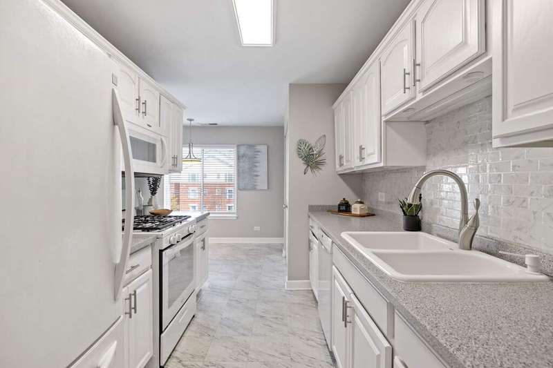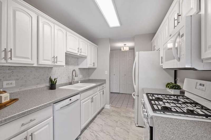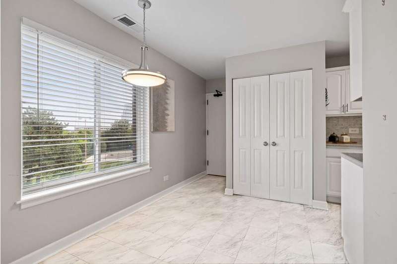 Beautifully updated and rarely available corner unit featuring 3 spacious bedrooms and 2 full bathrooms. Flooded with natural light, this spacious home offers a seamless blend of comfort and functionality, ideal for everyday living and entertaining. The open-concept living and dining areas flow effortlessly, while the eat-in kitchen provides a charming view of the courtyard, pool, clubhouse and morning sunrise. The kitchen is beautifully updated with white cabinetry and a stylish backsplash. Both bathrooms have been thoughtfully renovated, and the primary suite boasts a generous walk-in closet for added convenience. The primary suite, along with the secondary and guest bedrooms, each boast breathtaking sunset views. Additional features include newer windows, sliding glass doors, newer updated flooring, in-unit laundry, custom blinds created for every window and ample storage throughout-highlighted by a large pantry, linen closet, and foyer closet. Residents enjoy a wide range of amenities covered by the assessment, including a renovated clubhouse, swimming pool, tennis courts, as well as gas, water, garbage removal, and building maintenance. Convenience is enhanced with same-floor storage, a garbage chute, elevator access, and a heated garage with an additional storage unit. Perfectly located just steps from Yorktown Mall, Target, and a variety of fine dining options, close to lakeside parks with quick access to I-88 and I-355. This home offers the ideal balance of lifestyle, comfort, and convenience - commuting, recreation and shopping are a breeze.