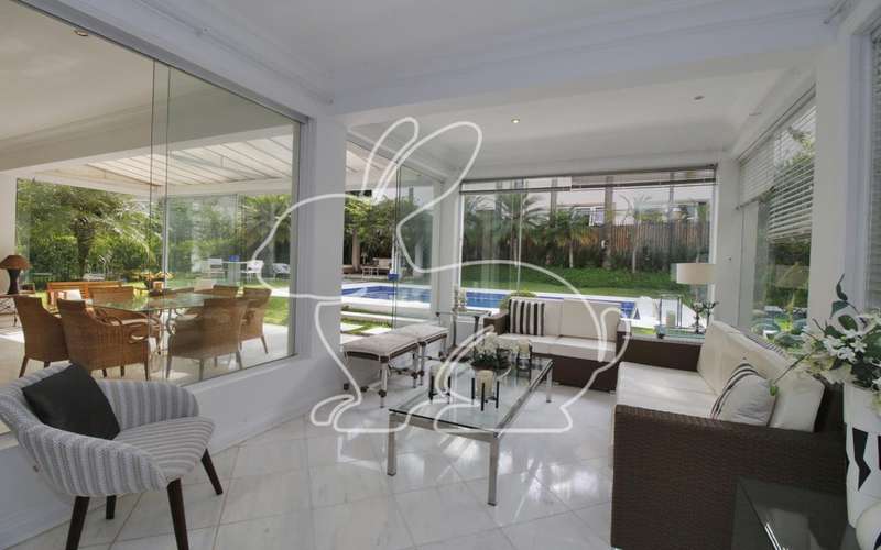 Casa em Condomínio no bairro Real Parque com 650m² área construída, 4 dormitório(s), 3 suíte(s), 8 vaga(s), 8 banheiro(s), piscina, escritório, mobiliado (a), com renda , ar condicionado, dep. de empregados, reformado (a), varanda, elevador.