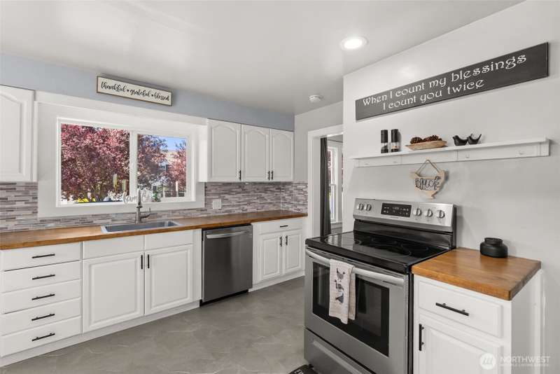 Well kept home! This 4 bedroom is updated in the last few years. Main level complete with 2 bedrooms, full bath, kitchen, living room, main entrance and rear entrance. Kitchen counter tops are very nice butcher block. Tile accented back splash. Breakfast nook with back yard view. Lovely kept exterior with a great gathering area for guests. This is a must see home. Very close to shopping, eating, medical and freeway. Schools are highly regarded in the area. No expense spared on the upgrades. Bring any and all offers