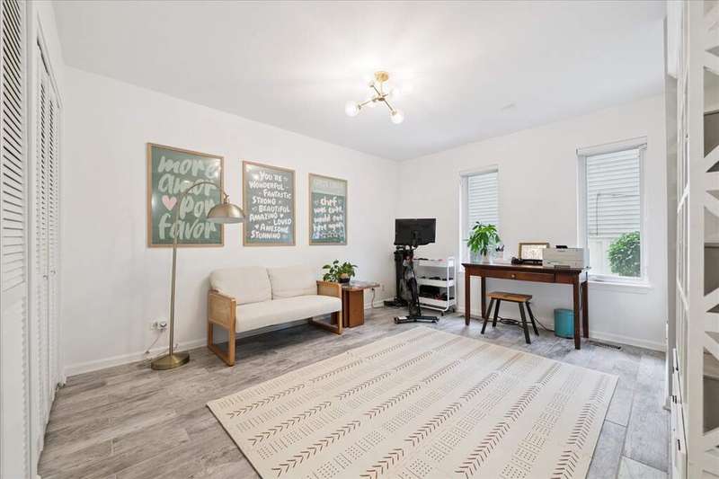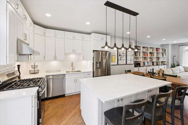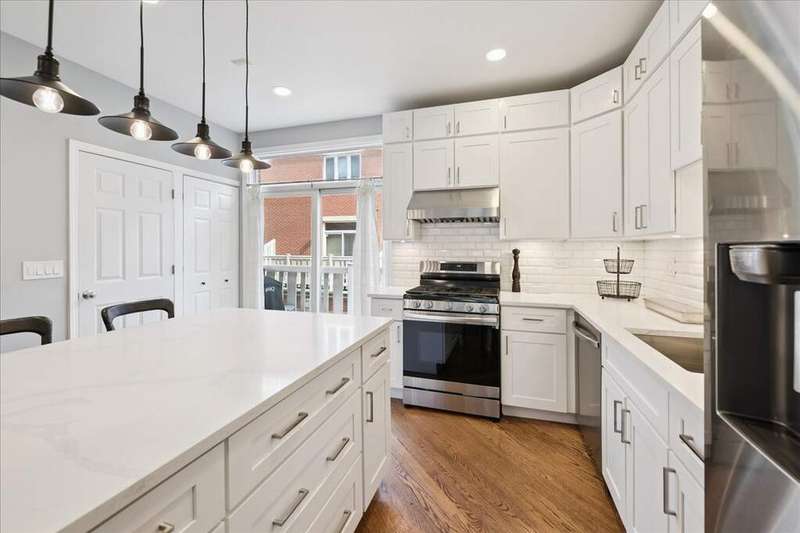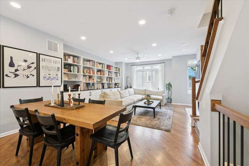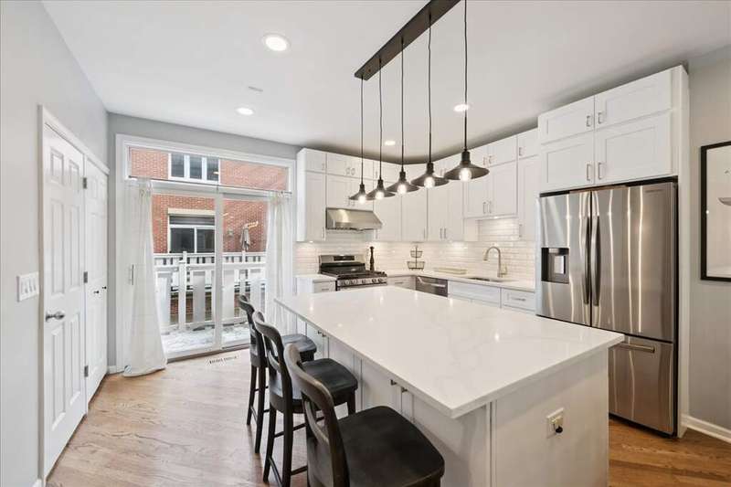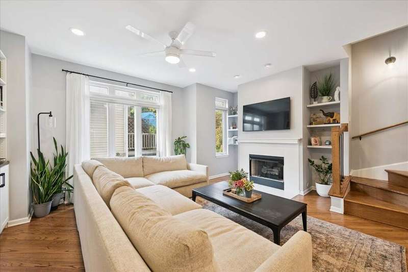 Welcome to this spacious 4-level townhome in the heart of Bucktown, offering 3 bedrooms, 2.5 baths, and a thoughtful floor plan designed for modern living. Tucked away with a quiet private entrance off Lister, the home opens to a generous family room on the ground level, complete with laundry and direct access to the attached 2-car garage. The second level boasts an open-concept layout filled with natural light, soaring ceilings, and a striking custom fireplace with built-in shelving. The expansive living and dining space flows seamlessly into the updated chef's kitchen, featuring a massive island, stainless steel appliances, and direct access to a private balcony perfect for grilling or morning coffee. Upstairs, the third level hosts two bedrooms, including a grand primary suite with a walk-in closet and a spa-like en suite bath with dual vanities, a large walk-in shower, and stylish finishes. A second bedroom and full bath complete this floor. The fourth level offers incredible versatility ideal as a guest suite, office, or additional bedroom plus access to a private rooftop deck where you can unwind or entertain while taking in neighborhood views. With multiple outdoor spaces, modern updates, and an unbeatable Bucktown location near restaurants, shopping, parks, and transportation, this townhome truly has it all.