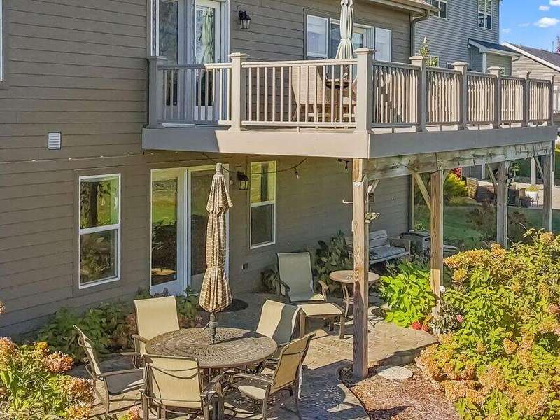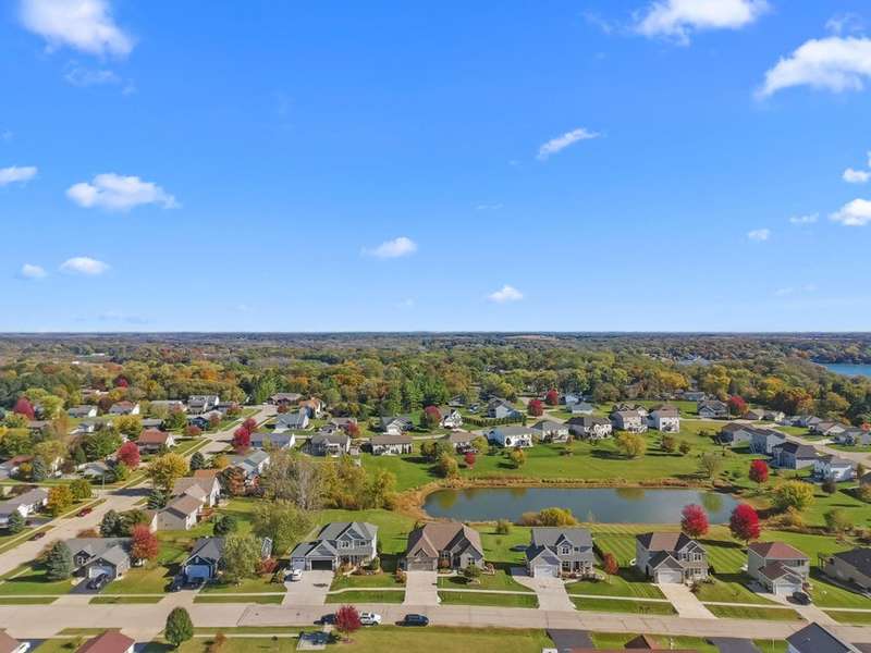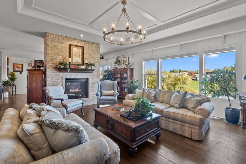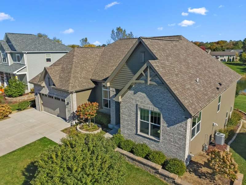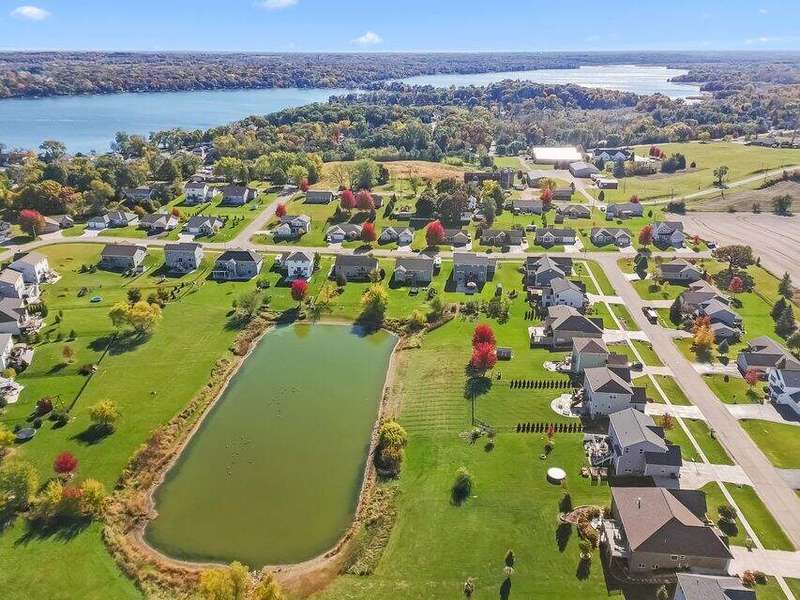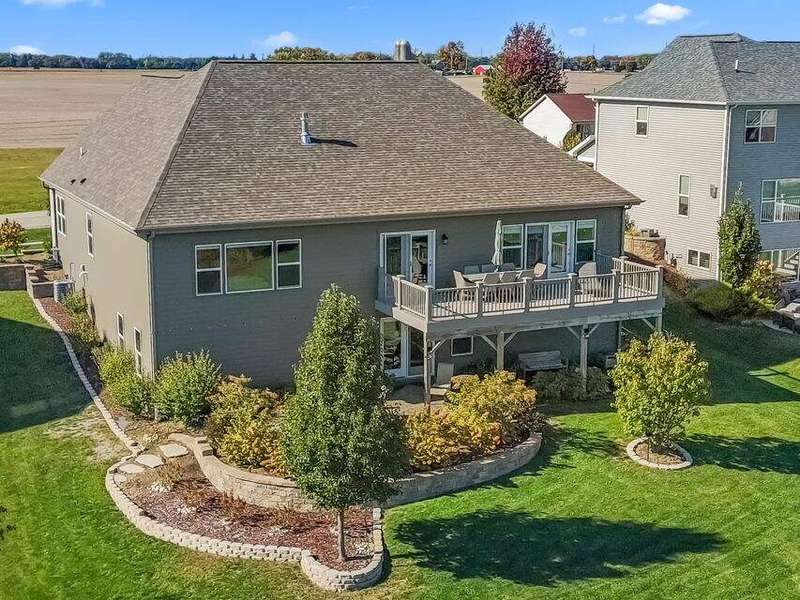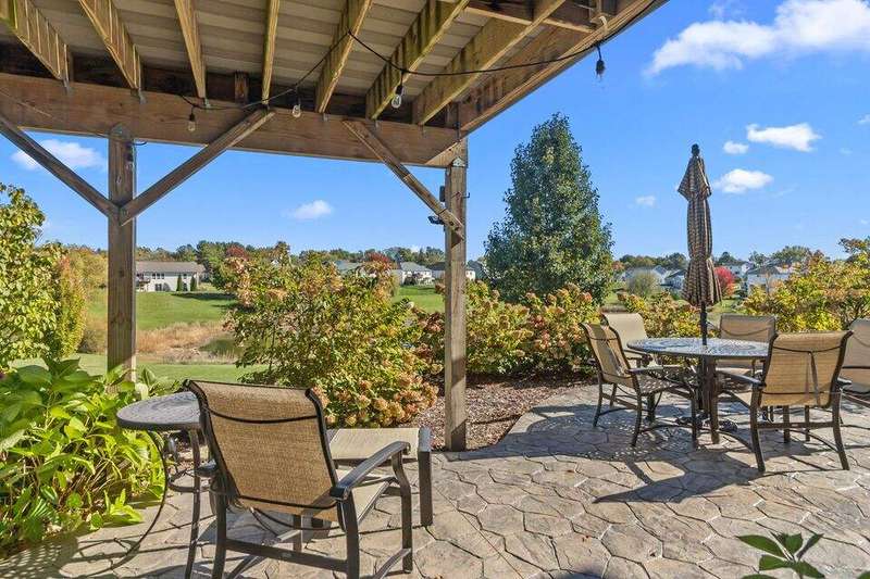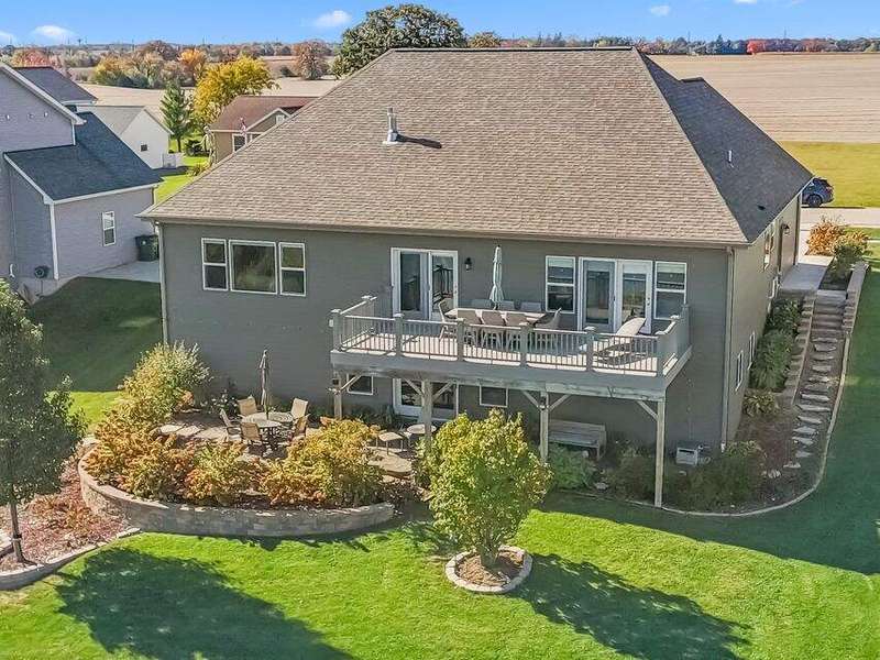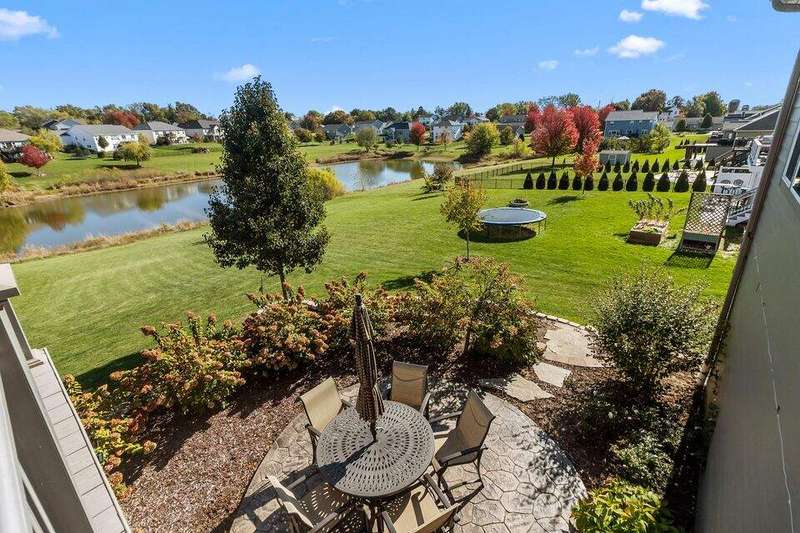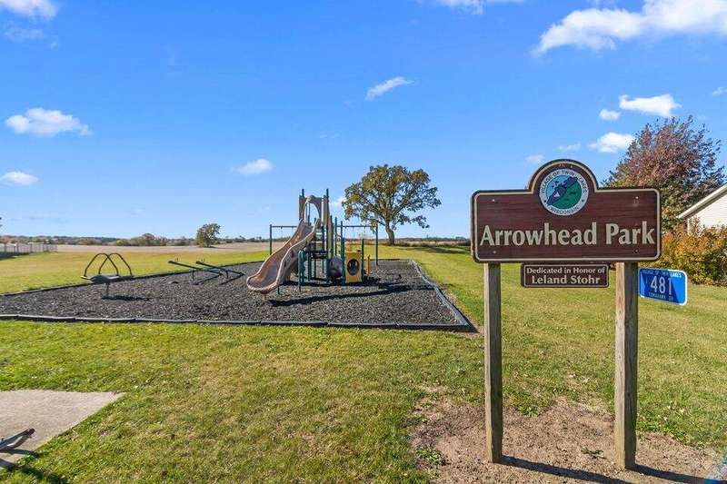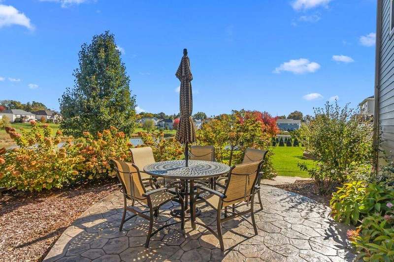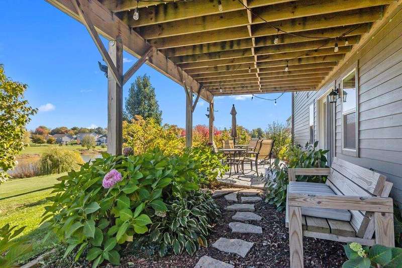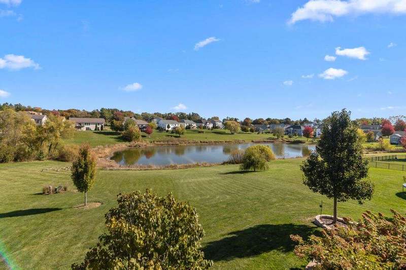 Welcome to this meticulously cared-for custom home in the highly sought after Arrowhead Subdivision. This stunning property has all the upgrades you could want. Step inside to discover a chef's kitchen featuring premium finishes, huge island and room to add your own butler's pantry, The dual-sided fireplace creates a warm and inviting atmosphere between the living and dining areas, while large windows fill the space with natural light and offer picturesque views of the beautiful pond. Private Deck, 3 spacious bedrooms plus a dedicated office, 2 Full Baths & Laundry Room all on the Main Floor! The full unfinished walk-out basement is already stubbed for an additional bathroom. Outside, a stamped concrete patio with lush landscaping and backyard invisible fence to property line. A MUST SEE!