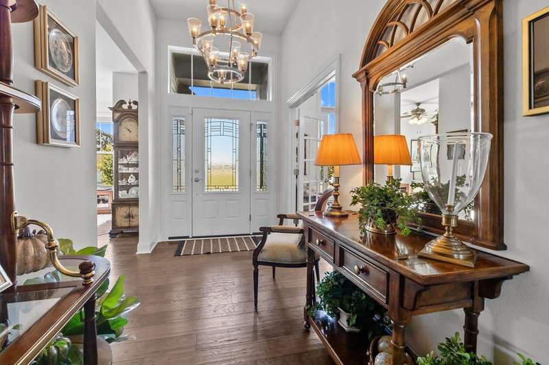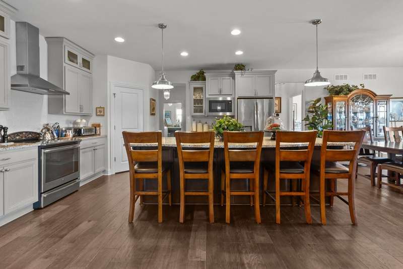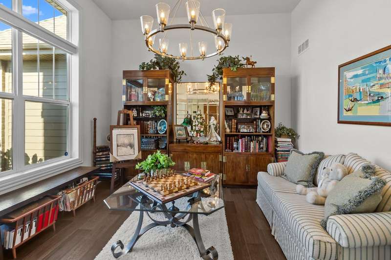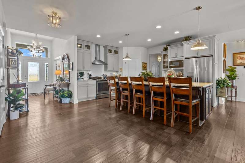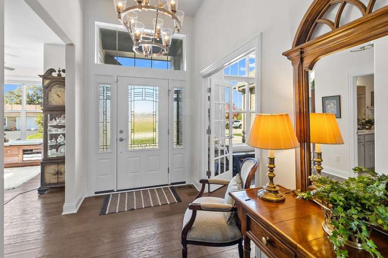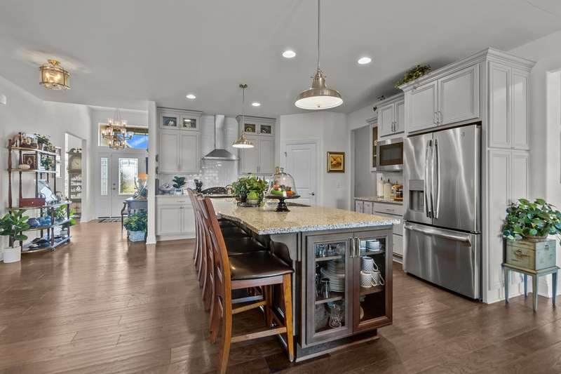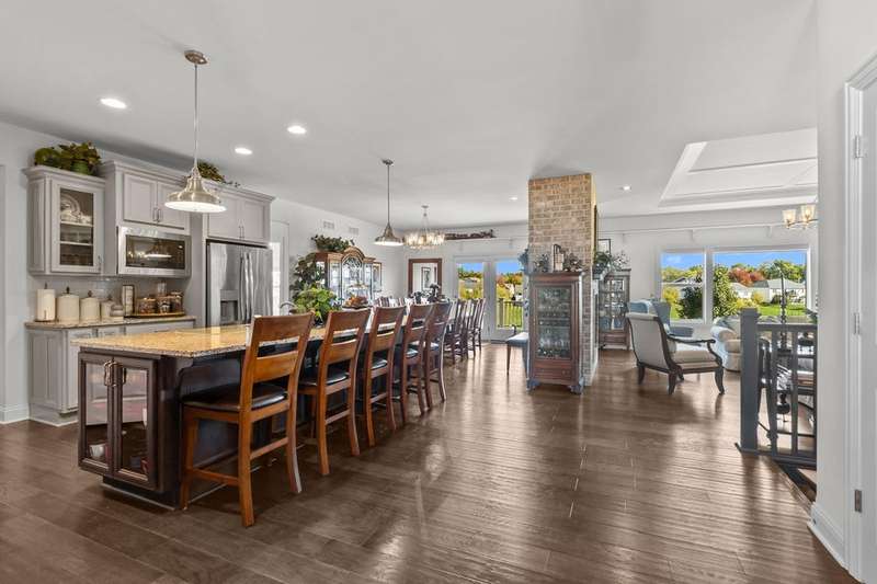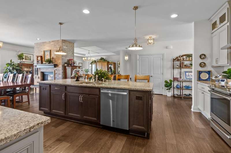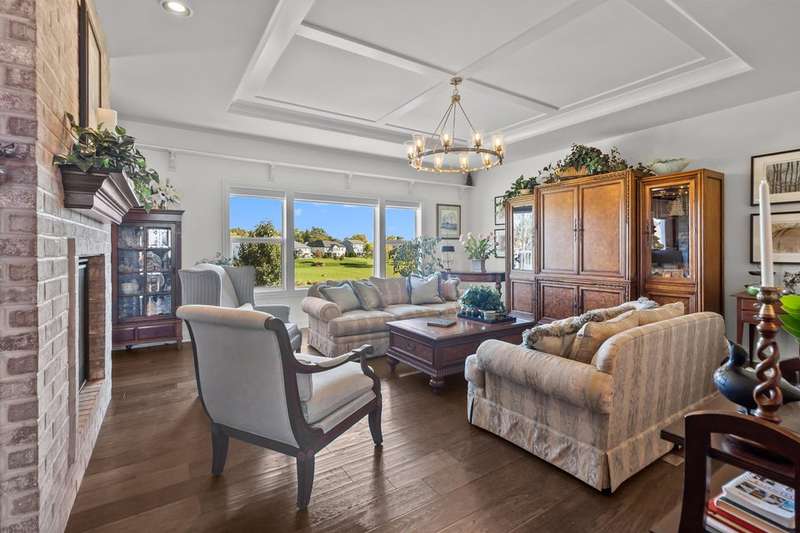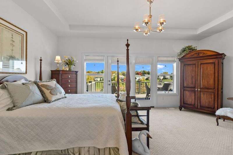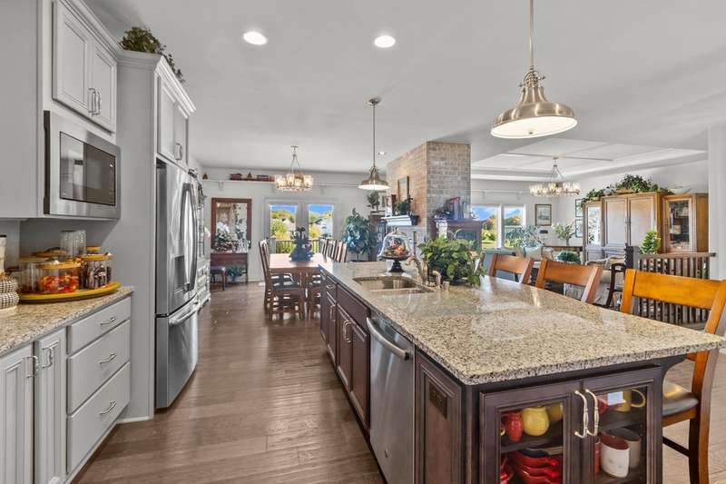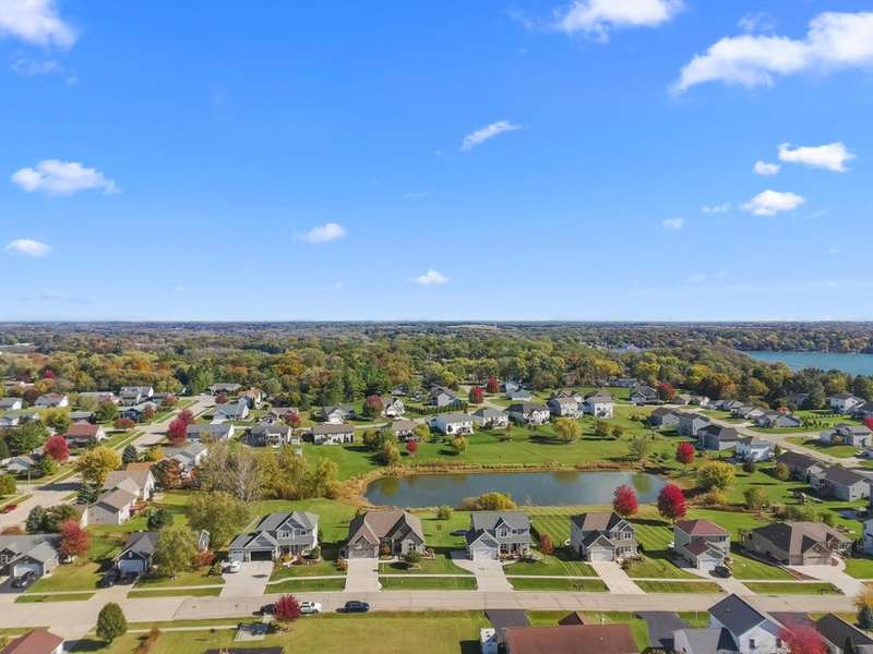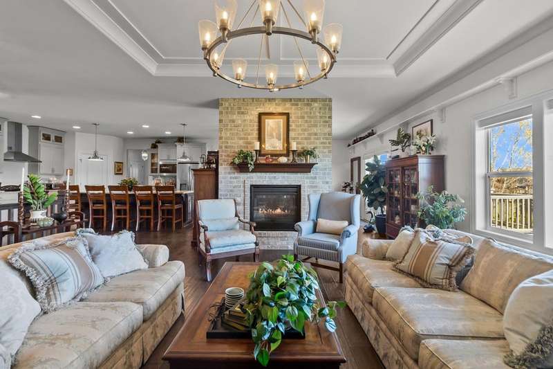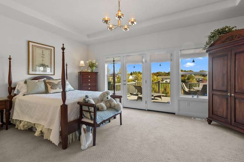 Welcome to this meticulously cared-for custom home in the highly sought after Arrowhead Subdivision. This stunning property has all the upgrades you could want. Step inside to discover a chef's kitchen featuring premium finishes, huge island and room to add your own butler's pantry, The dual-sided fireplace creates a warm and inviting atmosphere between the living and dining areas, while large windows fill the space with natural light and offer picturesque views of the beautiful pond. Private Deck, 3 spacious bedrooms plus a dedicated office, 2 Full Baths & Laundry Room all on the Main Floor! The full unfinished walk-out basement is already stubbed for an additional bathroom. Outside, a stamped concrete patio with lush landscaping and backyard invisible fence to property line. A MUST SEE!