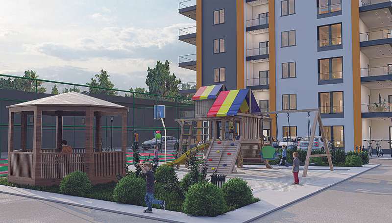 The mixed-use project, located on a total area of 12,400 m², is designed to include 2 residential blocks and 20 street-level shops. The project offers a wide range of facilities such as an open parking area, fire alarm system, 24/7 security, double fire escape stairs, full-capacity water tank, communal garden, children’s playgrounds, security cameras, basketball court, generator, and volleyball court.