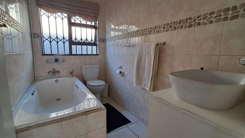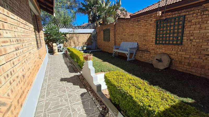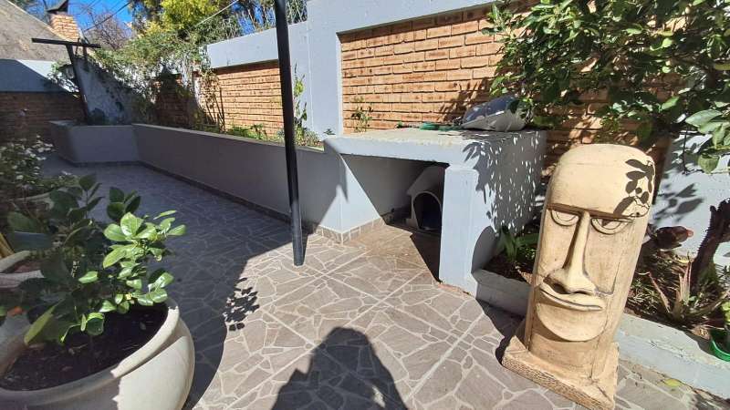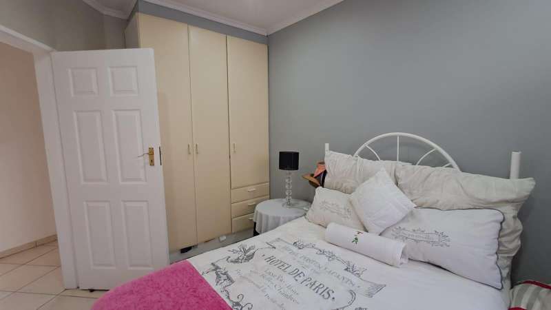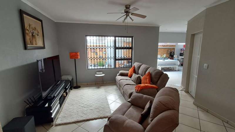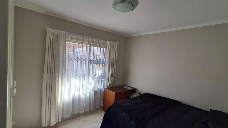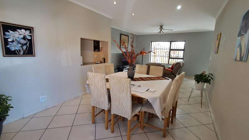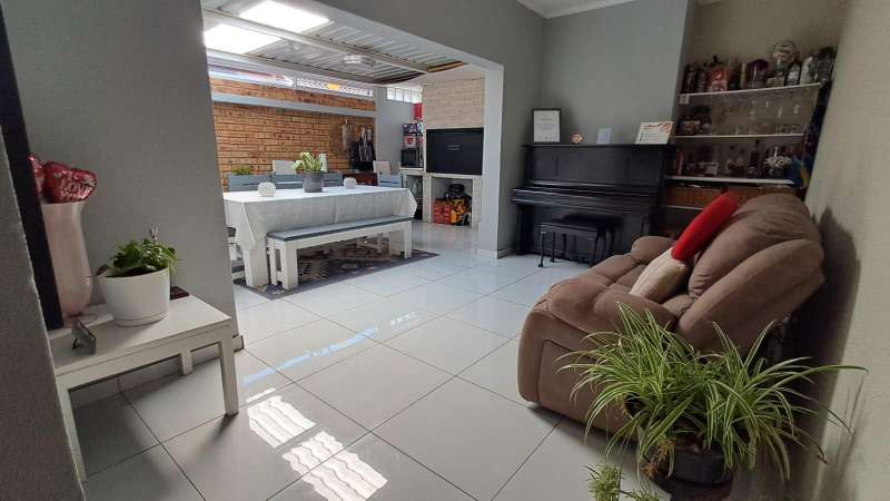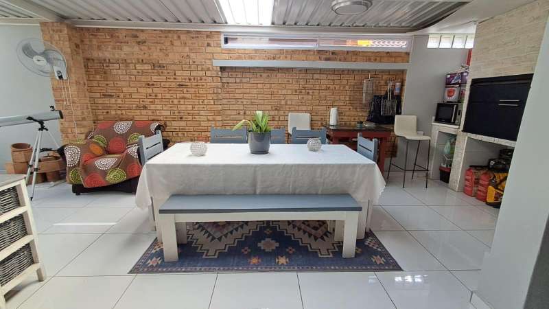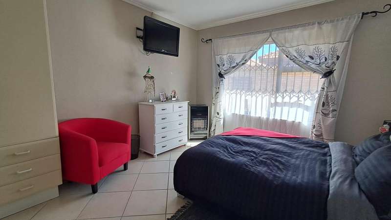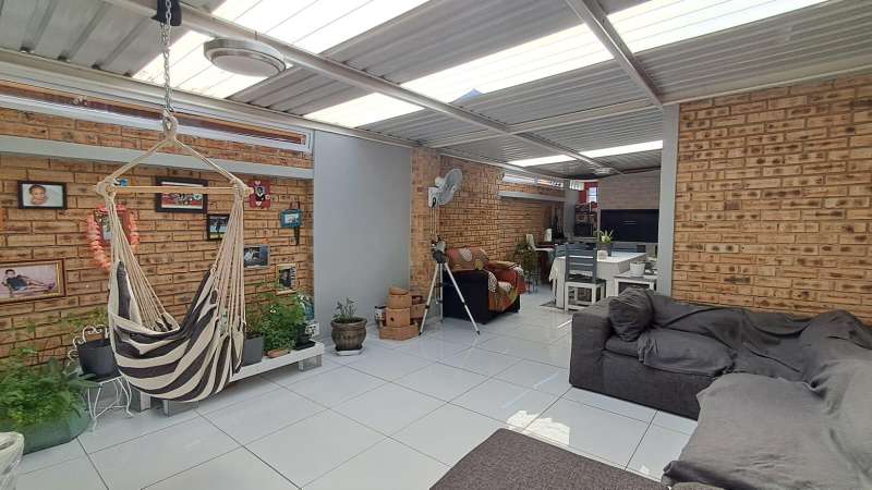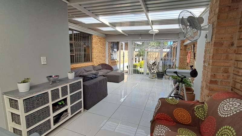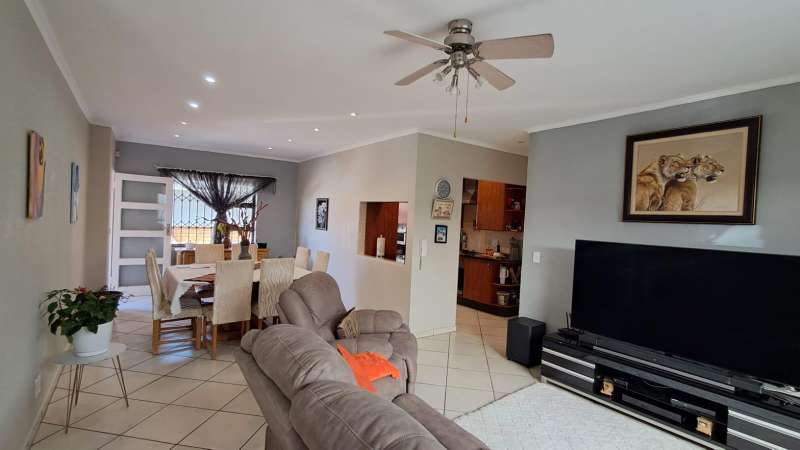 Come see and sigh with this free-standing cluster home, in the heart of New Redruth. The unit is located right at the back of this cluster home offering safety and peace of mind. There is electric fencing and alarm, pre-paid electricity and solar lighting. Open plan living room and dining room. Kitchen with a serving hatch, kitchen has granite tops with under counter oven and gas hob. The feature in this seamless cluster home is the covered entertainment area with a built in braai, stack up doors to walk out to the garden area and play with your pets. Three sun filled bedrooms with tiled floors throughout. Two bathrooms and the en-suite has a shower cubicle too. Double automated garage doors and a carport. Contact me for a viewing appointment.