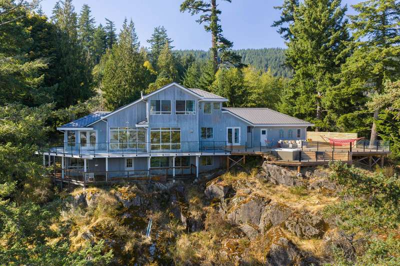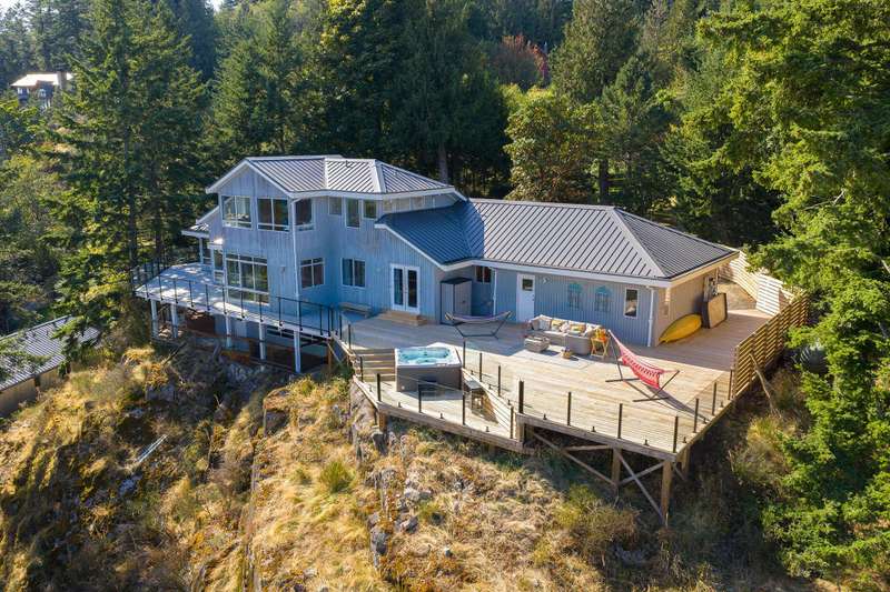Panoramic ocean views, a 3600+ sf home with 5 bedrooms, and a large property with almost ¼ acre of flat lawn make this a rare combination. Along the tree-lined driveway is a spacious park-like area with room for family reunions, kid’s birthday parties, and gatherings around the firepit with friends. The 2400sf wrap around deck, with a new hot tub. provides awe-inspiring views of the ocean and mountains. With a desirable floor plan that features bedrooms and full bathrooms on every floor, this is a great home for large families and for those who need separate work-from-home spaces. The lower floor opens to a mature, landscaped garden that is fenced to keep the deer out and the dogs in. It's just a 5-minute drive to Snug Cove, and the school bus picks up and drops off at the driveway.
