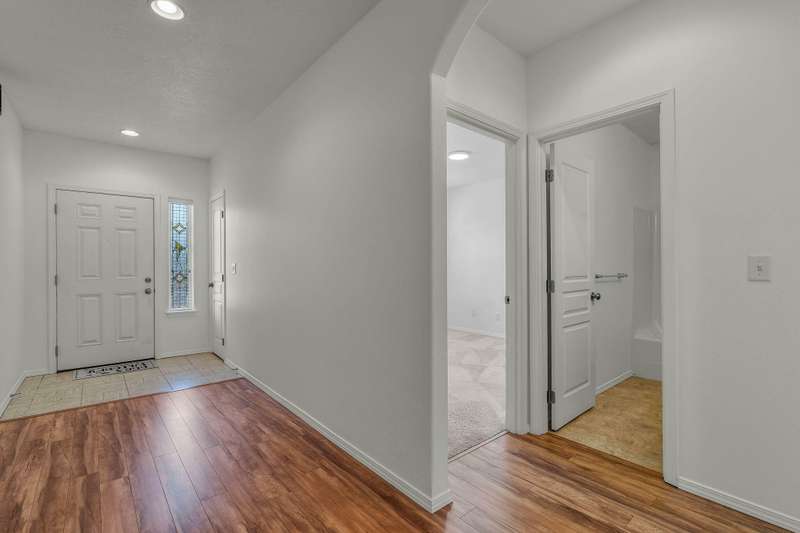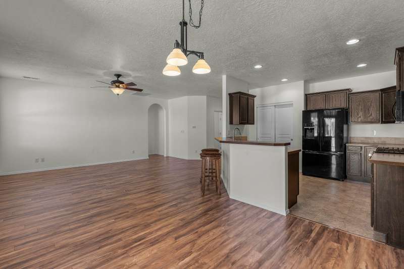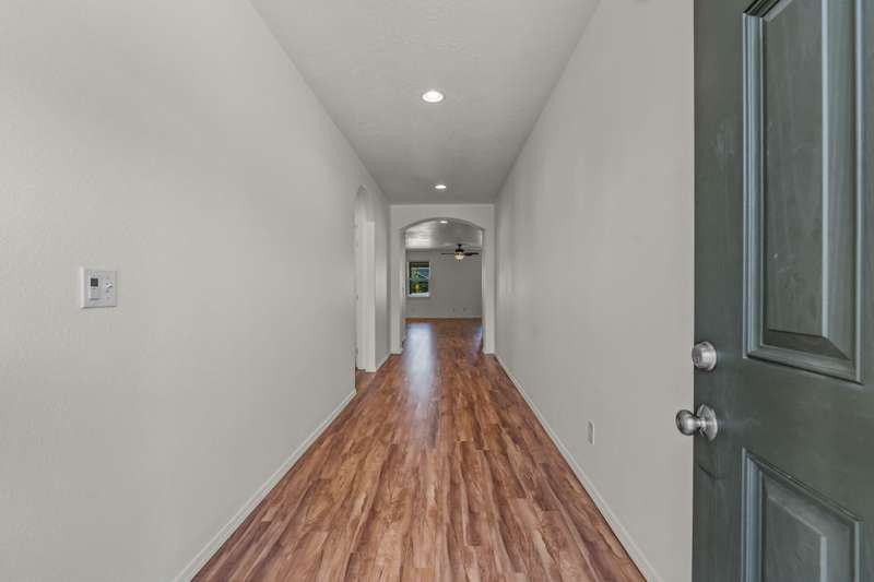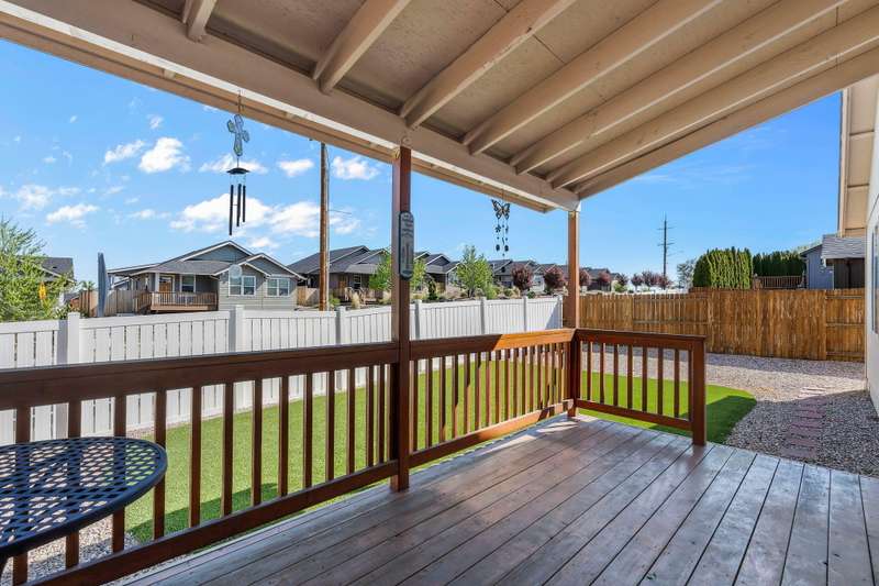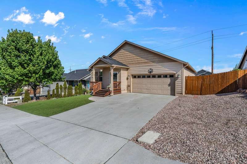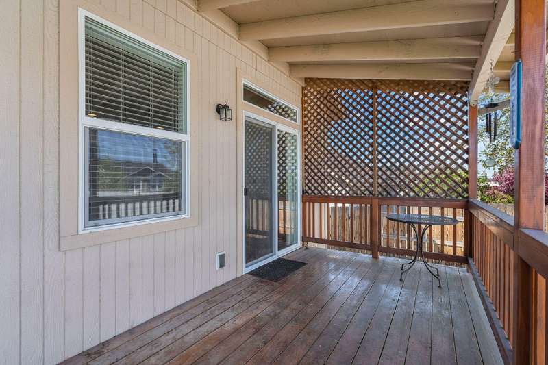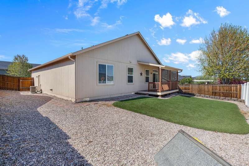 Very nice open floor plan for this home. From the wide entry hall you can see all the way to the living room. You pass by two, nice sized bedrooms and bathroom. Your primary suite is off by itself and is quite large. It has a walk-in closet and a large apportioned bathroom with shower. The well appointed kitchen has a gas range, that was added later and the dishwasher is only 2 years old. The kitchen is open to the living and dining room. Vaulted ceiling with ceiling fan make it very comfortable. Also added later was a central A/C unit & solar attic fan for the warm summer days. The grass has been removed and artificial turf added. The front and rear porches are great sitting areas. There is an entry ramp in the garage, that can be easily removed and hand rail added back on. The sprinkler system is still in place to add additional plants if needed. Seller is offering $15,000 towards buyers closing cost and pre paid.