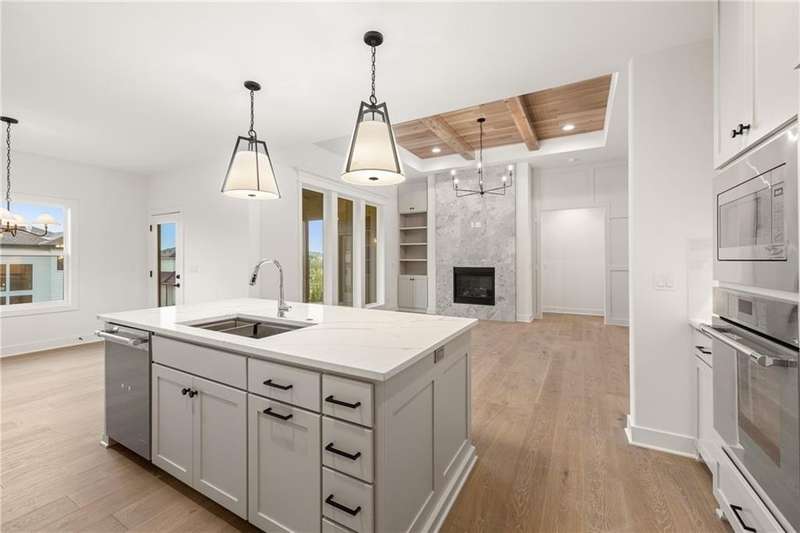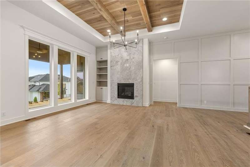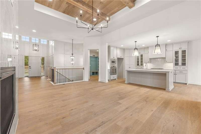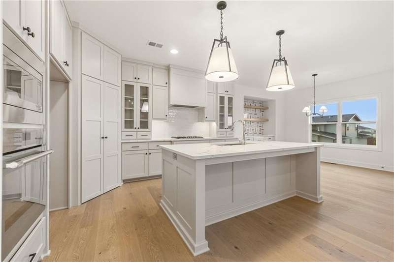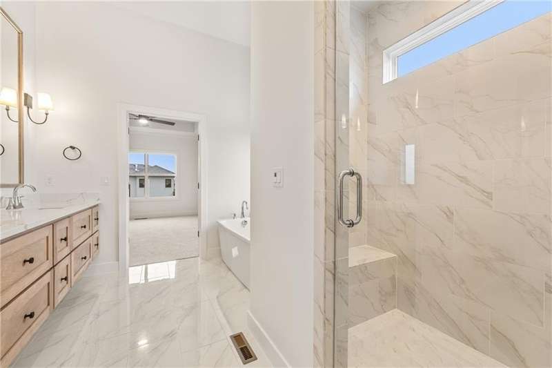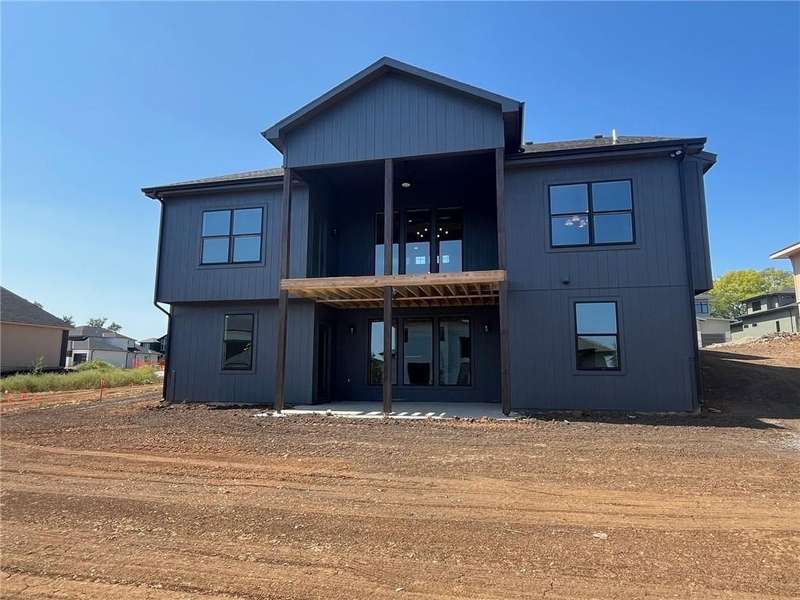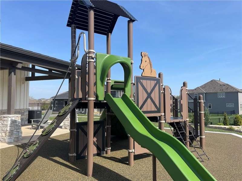MOVE IN READY! The modern Riviera REVERSE by SAB Homes located on lot 184 in a cul-de-sac with a full finished walkout basement. You will love this new modern twist to a classic reverse floorplan at just over 3000 square-foot. with spectacular curb appeal featuring high peaks, vertical accent siding, metal accent roof, blackened bronzed windows, and super dark charcoal paint with red brick trim. Stunning! This home also features an ideal plan floor plan with a main floor primary suite and an office/ second bedroom with access to the covered 16' x 12' deck from the dining room and bedroom. Enjoy the finished walkout lower level with two more bedrooms, large family room with LVT flooring, parallel wet bar and a door to the backyard, plus plenty of room for storage. Perfect outdoor space under a 16' x 12' covered patio with full sod front and back, sprinkler system and front landscaping package included. This home is loaded with upgrades; gas cooktop, quartz countertops, decorative bath mirrors, Maxx Lounge freestanding tub, bump out in the dining area for hutch or china cabinet, boot bench at garage entry, large windows, floor to ceiling tile fireplace with accent ceiling trim in great room, vertical shiplap accent wall in the office with 3 ceiling beams, wainscoting at entry and stairwell and light wood flooring. Century Farms has a spectacular club house with a farmhouse twist ideal for neighborhood gatherings or private parties with reading loft and a fitness center. There are plenty of neighborhood activities with a fire-pit, two pickle-ball courts and a basketball hoop, kids play area, wildflower walkways and a community garden. Century Farms is conveniently located near the brand new Bluhawk shopping center, Heritage Park, the Johnson County Trail system and the Overland Park Arboretum. Come join the fun in Century Farms, a unique one of a kind upscale new home community in Overland Park. BLUE VALLEY SCHOOLS