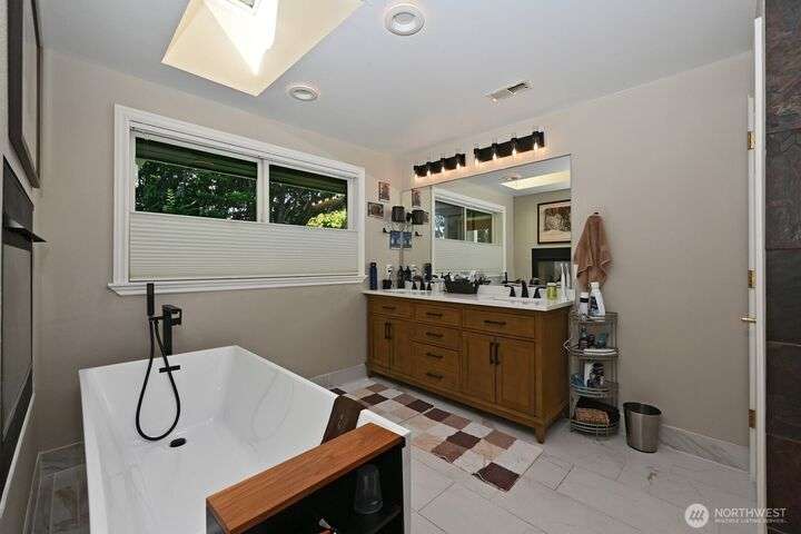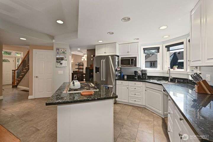 Plenty of space, The quality you would choose, A great location to relax and play, 1 block to 135 acre Lincoln Park, 3 miles sandy beach, Colman Pool, Dramatic View primary w/5 fixture bath, gas fireplace, and door to private deck, Downstairs giant 2 room recroom w/wet bar, 2 bedrooms, a 3rd without a closet, a three quarter bath, and level access to the yard. Large unfinished space w/separate entry, Salt air! Much more!