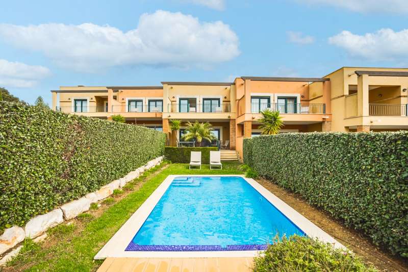 Luxury 2-bedroom villa, fully furnished, with swimming pool, garden and parking, in the Vale de Milho Village tourist development in Carvoeiro, Algarve. This 2-bedroom villa, located in the exclusive Vale de Milho Village tourist development in Carvoeiro, is for sale fully furnished and equipped. With a private pool, garden and parking, this property offers comfort, privacy and an excellent location. The villa is divided into three floors, carefully designed to provide functionality and elegance. On the main floor, we find a large and bright living room connected to an elegant dining room. From the living room there is direct access to the balcony, the private garden and the pool, perfect for moments of leisure and relaxation. The kitchen is fully equipped with modern appliances, and has plenty of storage space. Adjacent to the kitchen is a service bathroom. On the upper floor are the two spacious bedrooms, both en suite, with large windows and built-in closets. The bathrooms are modern, one with a bathtub and the other with a shower, ensuring comfort and versatility. The basement has extra storage space. Vale de Milho Village also offers an excellent infrastructure, with lush gardens and artificial lakes, controlled entry, privileging the security and privacy of residents. With an excellent location, in the Algarve fishing village of Carvoeiro, an area with growing demand and charm. The Carvoeiro area is known for its natural beauty, its wide range of outdoor activities and its proximity to the Vale de Milho golf course. The villa is just a few minutes from Carvoeiro beach and the town center, where are the restaurants, bars and stores. Faro International Airport is just 45 minutes away. This villa also represents a unique investment opportunity, allowing the property to be rented out through the rental program available at Vale de Milho Village (optional). CHARACTERISTICS:Area: 403 m2 | 4 332 sq ft Useful area: 110 m2 | 1 189 sq ft Bedrooms: 2 Bathrooms: 3 Energy efficiency: Certification in progress FEATURES: 2 bedrooms Equipped kitchen Balcony / Terrace Air conditioning Garden Swimming pool Private parking Tourist resort