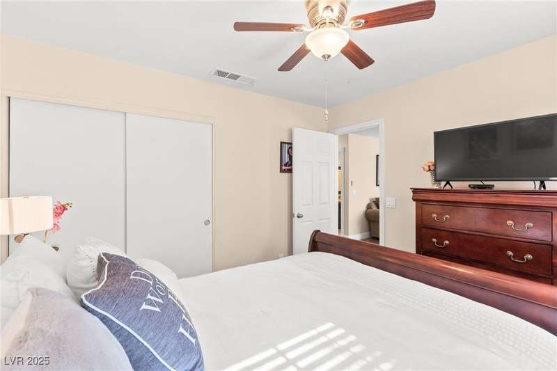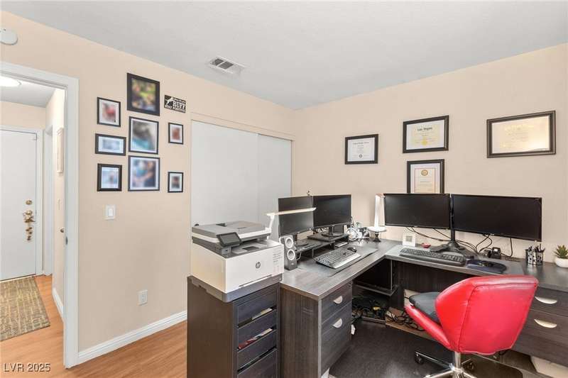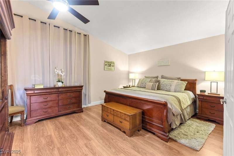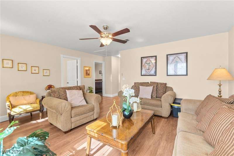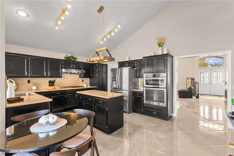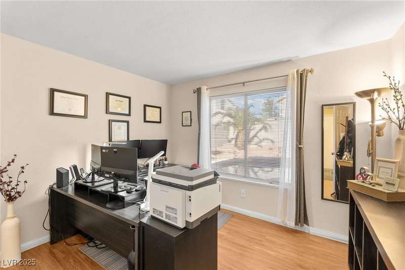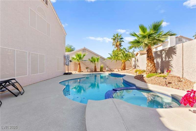 Elevated living meets refined comfort in this impeccably upgraded residence with NO HOA! The gourmet kitchen boasts premium stainless steel appliances and generous counter space, flowing to a sophisticated sunken living room and an elegant dining area ideal for hosting. True pride of ownership throughout, extremely clean, and completely turn key! Dual family rooms, including one with a stylish fireplace, offer exceptional flexibility. The luxurious primary suite features soaring ceilings, a custom-designed wardrobe, and a spa-quality bath with granite finishes and a jetted tub. Well-appointed secondary bedrooms ensure comfort for all. Outdoors, a private resort-style retreat awaits with a pristine pool, inviting spa, and an expansive deck for elevated outdoor living. Ideally located near the Airport, the Las Vegas Strip, and the future Brightline High-Speed Rail. Move-in ready for its next discerning owner. Don't wait, schedule your tour today!