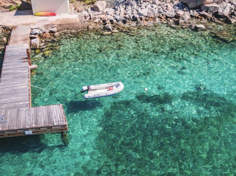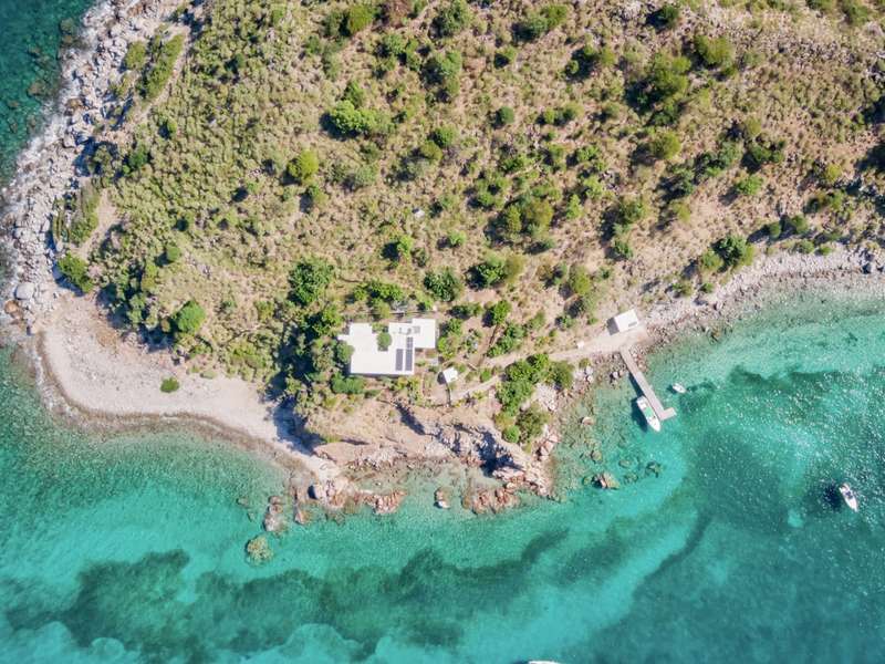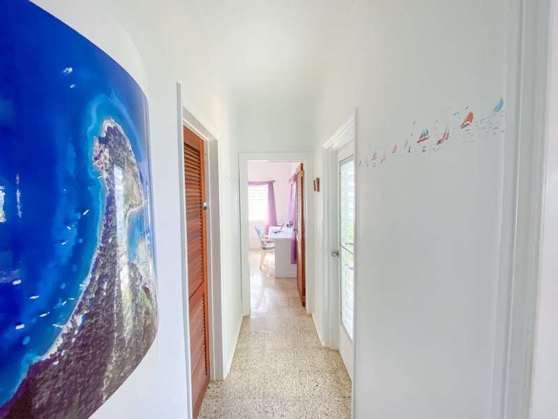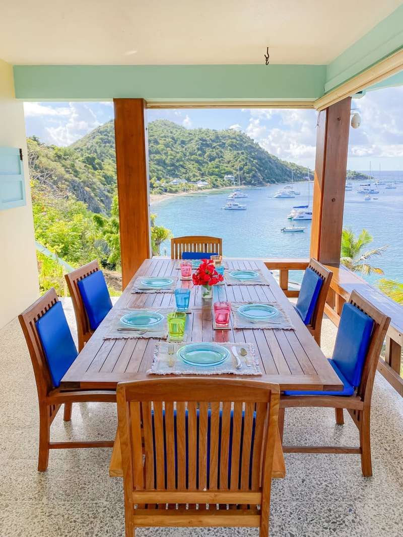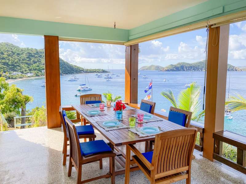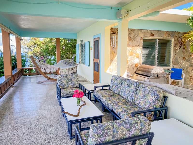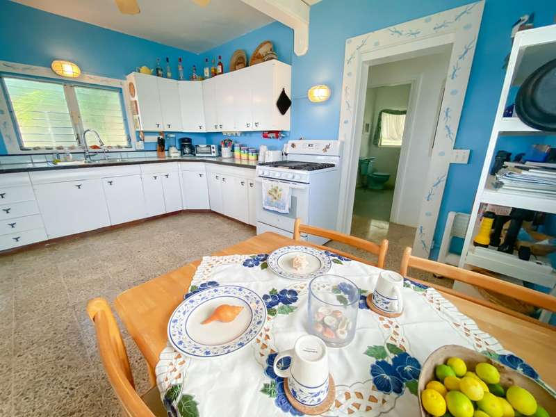 The house at Quart-A-Nancy Point, with approximately 160m (500ft) of shoreline on Manchioneel Bay, is reachable only by boat to a private dock. It is a self-sustaining, eco-friendly property, utilizing solar energy to provide 110 Volt electricity to run all usual household devices. Backup batteries continue to provide power at night, and there is also a backup generator. The house comprises three bedrooms and two bathrooms. A covered porch as an outdoor living area runs the entire length of the West facing side of the house with glorious uninhibited views out over the Ocean. Al Fresco dining is the order of the day, supplemented by a large kitchen and courtyard BBQ area.
