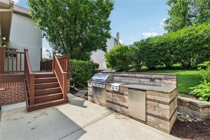 Experience turn-key luxury in this impeccably maintained 4-bedroom, 3.5-bath residence, complete with a 4-car garage. This home boasts a spacious, high-ceiling multi-purpose room bathed in natural light from Pella windows, plus a dedicated basement gym area. Enjoy seamless indoor-outdoor living with a built-in outdoor gas kitchen and a private, professionally landscaped backyard featuring accent and path lighting, and a durable Trex deck. Inside, discover upgraded custom bathrooms and powder room, elegant porcelain and hardwood flooring throughout, and modern conveniences like a newer washer/gas dryer, new kitchen refrigerator and microwave. The oversized driveway, ample storage, and upgraded smart home features, including a central security system and smart garage door opener, add to this home's exceptional curb appeal and move-in readiness. All of this in Westmoreland County and Penn Trafford School District!
