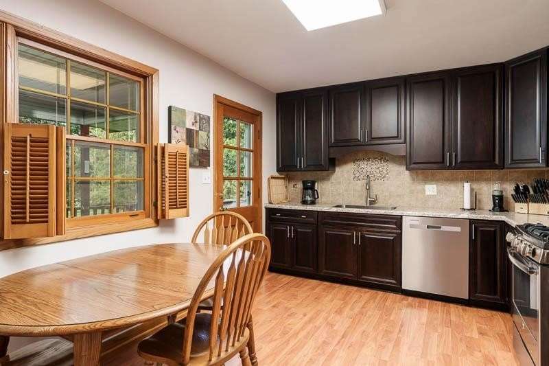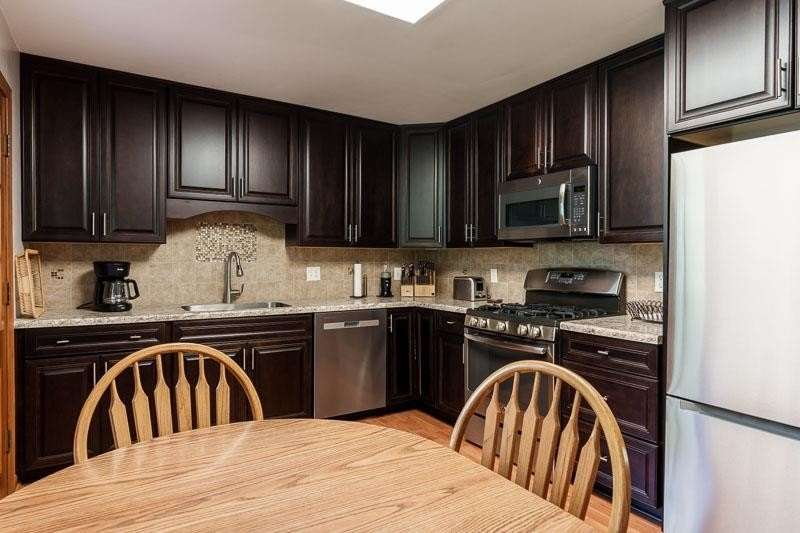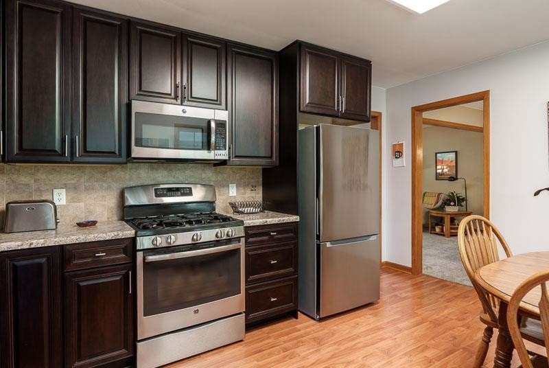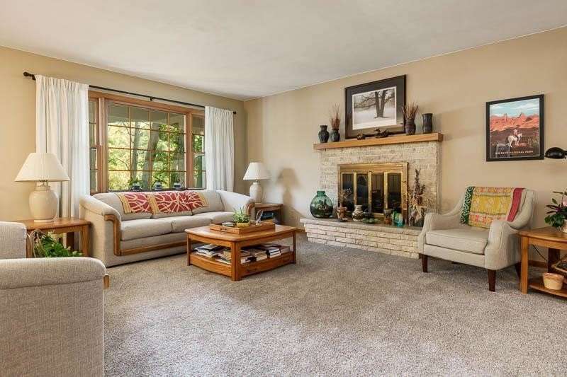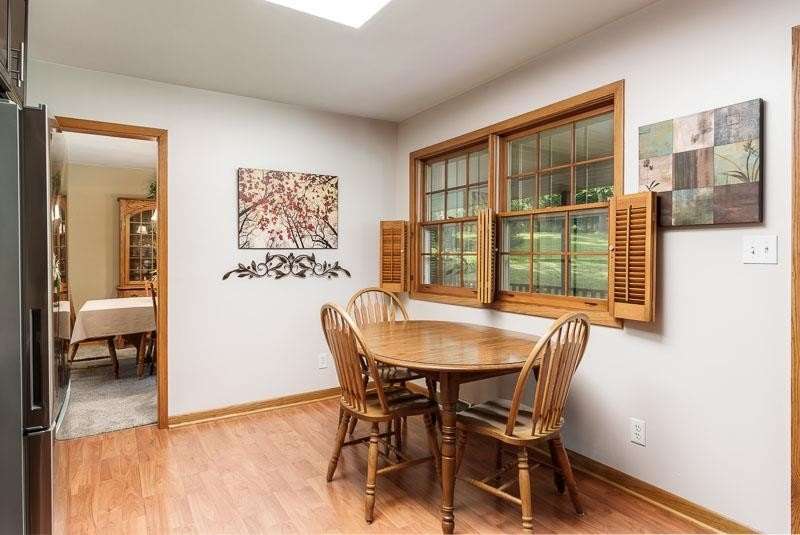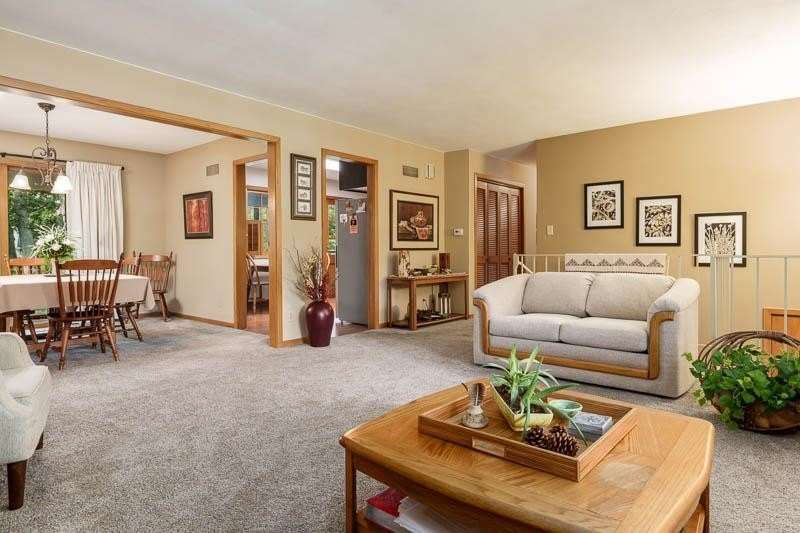 Nestled in a highly desirable neighborhood, this 2,400 sq ft MOL, meticulously maintained bi-level home is a true showcase of pride of ownership. Featuring three spacious bedrooms, including a master suite with its own attached bath, this home offers comfort and privacy. The updated kitchen, complete with stainless steel appliances, flows seamlessly into the adjoining dining room, which has a sliding door leading to a covered porch—perfect for enjoying outdoor meals or relaxing with a cup of coffee. The large living room boasts a cozy wood-burning fireplace, creating an inviting space for gatherings or quiet evenings at home. The lower level features a versatile L-shaped family/rec room, complete with a second wood-burning fireplace—perfect for creating a warm, cozy atmosphere. A patio door leads to the private backyard, making this space ideal for both relaxation and entertaining. Additionally, there’s a flexible office space next to the laundry/bathroom that could easily serve as a 4th bedroom if needed. This home also offers a 2-car attached garage, ample parking with a circle drive, and a beautifully wooded, mature lot that provides both privacy and curb appeal. With its thoughtful layout, modern updates, and fantastic location with easy access to I-90, this home is the perfect blend of style and function. Don’t miss out on this beautifully maintained home in a fantastic area!