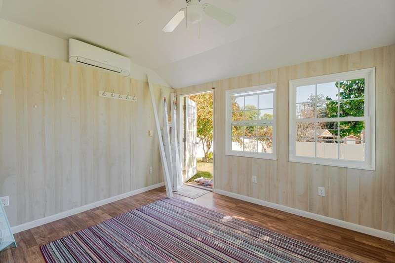 Beautifully maintained brick Colonial in Waynesboro. Enjoy hardwood floors, detailed trim work, and a welcoming living room with a brick wood-burning fireplace and built-ins. The bright dining room features classic wainscoting and flows easily into the kitchen with white cabinetry and tile backsplash. Outside, relax in the fenced backyard with a versatile outbuilding, half garden shed, half office or art studio complete with electricity and a mini-split system. A perfect blend of character, function, and convenience close to parks, shopping, and downtown.