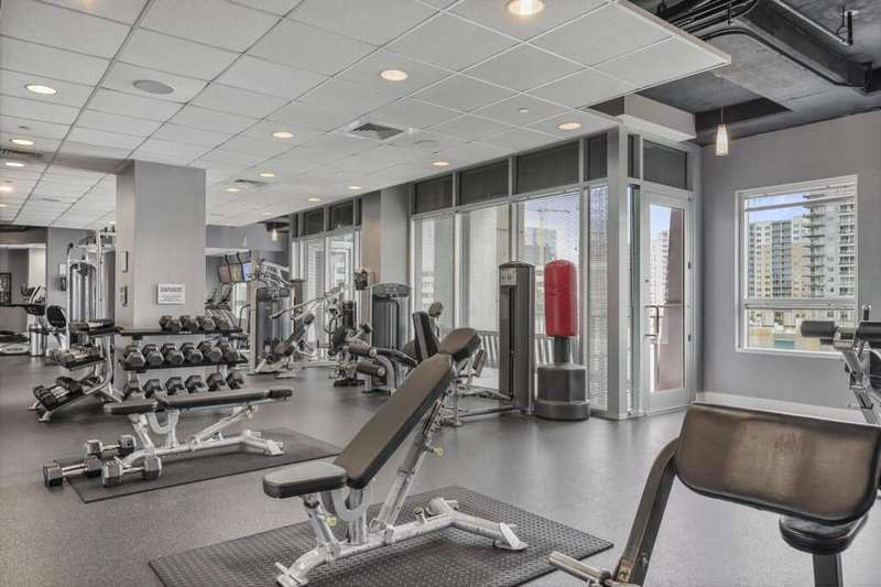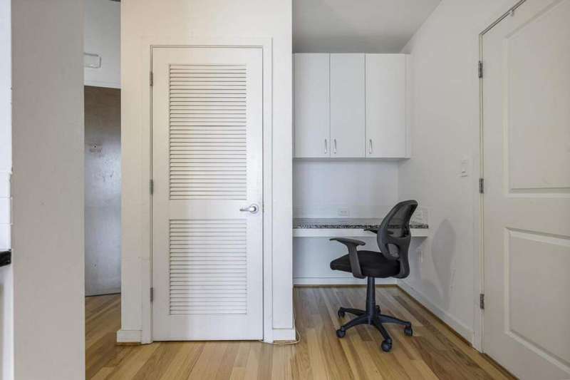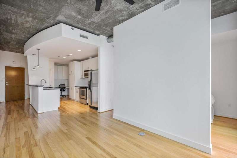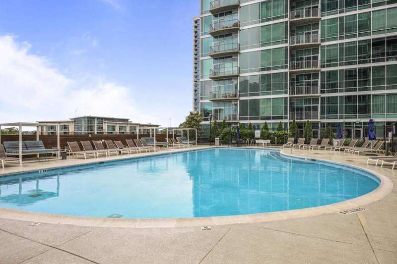 Located in Midtown, this bright and stylish 1 bed, 1 bath condo offers modern city living in the coveted Metropolis building, built in 2002. The open-concept layout features hardwood floors throughout, a sleek kitchen with stainless steel appliances, stone countertops, and a breakfast bar-ideal for both everyday living and entertaining. The bedroom opens directly to a private balcony, and the updated bathroom includes a shower/tub combo. Additional highlights include in-unit laundry, a built-in office nook, and one assigned covered parking space (with a waitlist for additional spots). A standout feature: the saltwater pool, state-of-the-art fitness center, and outdoor lounge areas are all located on the same floor-just steps from your unit. Metropolis also offers a 24-hour concierge, business center, conference room, rooftop deck, grilling stations, and a resident clubhouse. Live in the heart of it all-just minutes from Georgia Tech, MARTA, Piedmont Park, the Beltline, the Fox Theatre, and some of Atlanta's best dining, shopping, and nightlife.