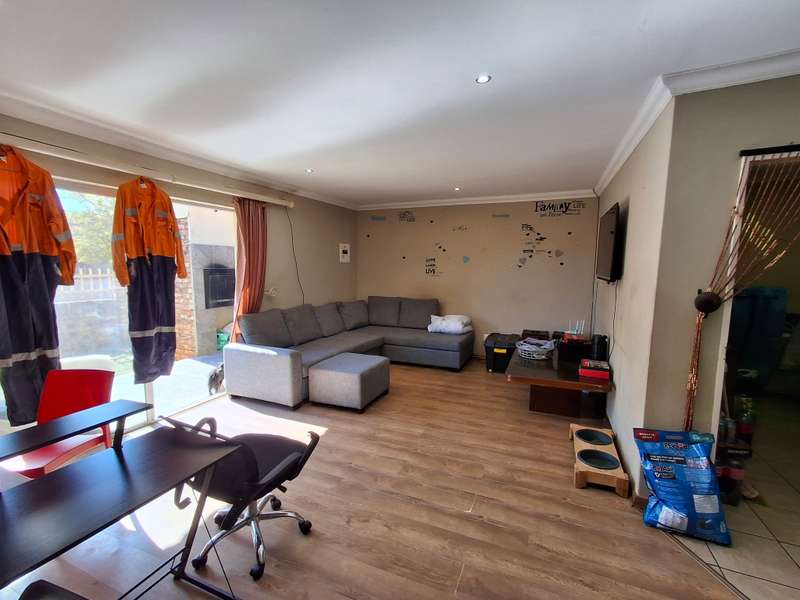Located just 7 km from Kimberley, this property is nestled within a peaceful and secure country estate, offering a tranquil lifestyle with easy access to town amenities. The neat, low-maintenance face-brick home boasts three well-proportioned bedrooms and two modern bathrooms, including a main en-suite. The open-plan living and dining area creates a welcoming atmosphere, with a sliding door that opens onto a private garden—ideal for outdoor relaxation or entertaining. The fitted kitchen is functional and well-designed, featuring ample cupboard space and convenient work surfaces. A built-in braai area enhances the outdoor entertainment experience, perfect for family gatherings. The single garage has been thoughtfully converted into a study, providing a quiet workspace or additional living area. A separate storeroom offers practical storage solutions. Set within a secure estate, this property combines the benefits of countryside living with the convenience of proximity to Kimberley, making it an ideal choice for families or professionals seeking space, safety, and serenity.