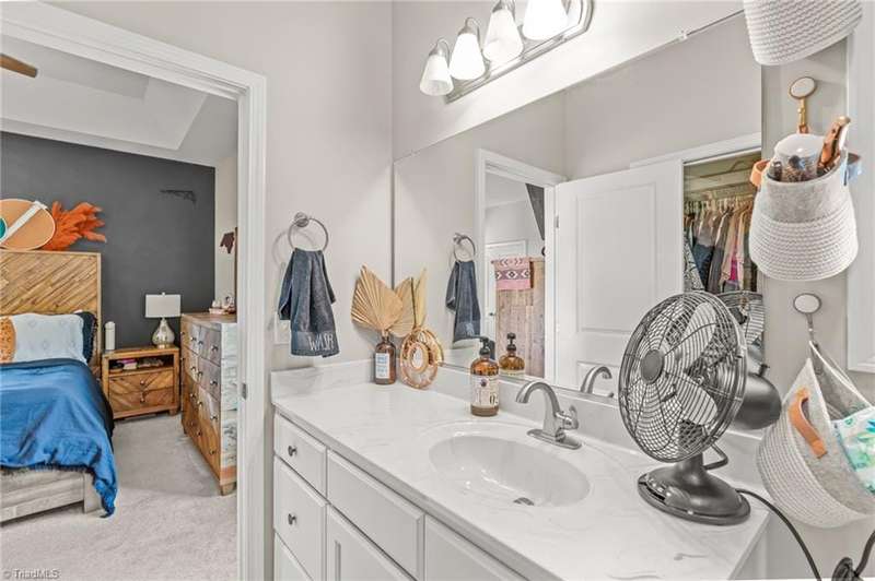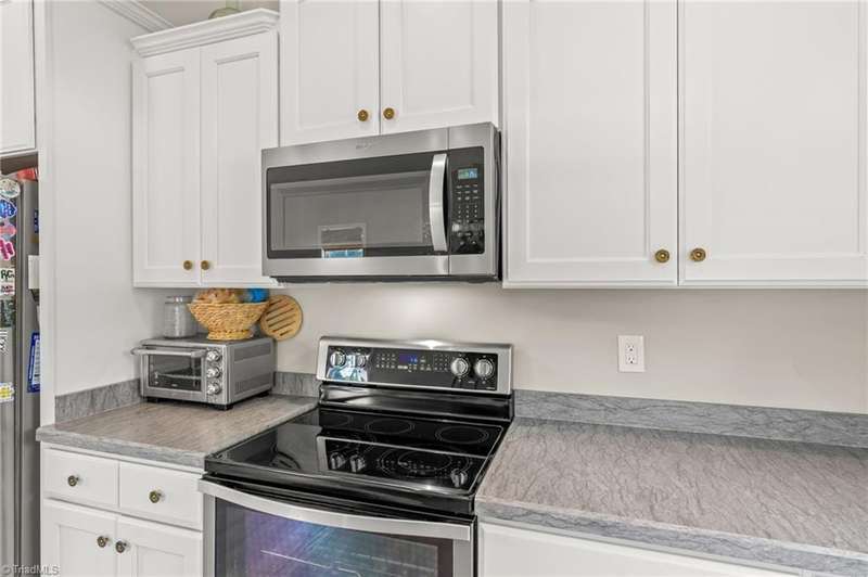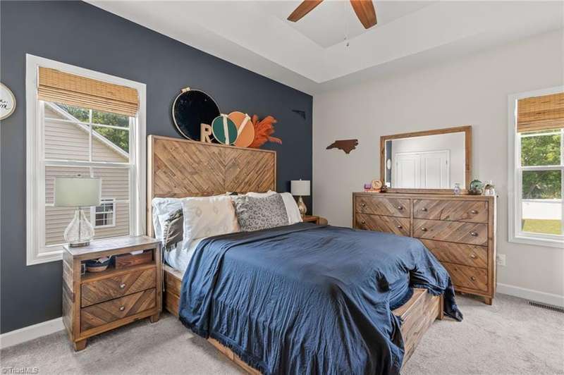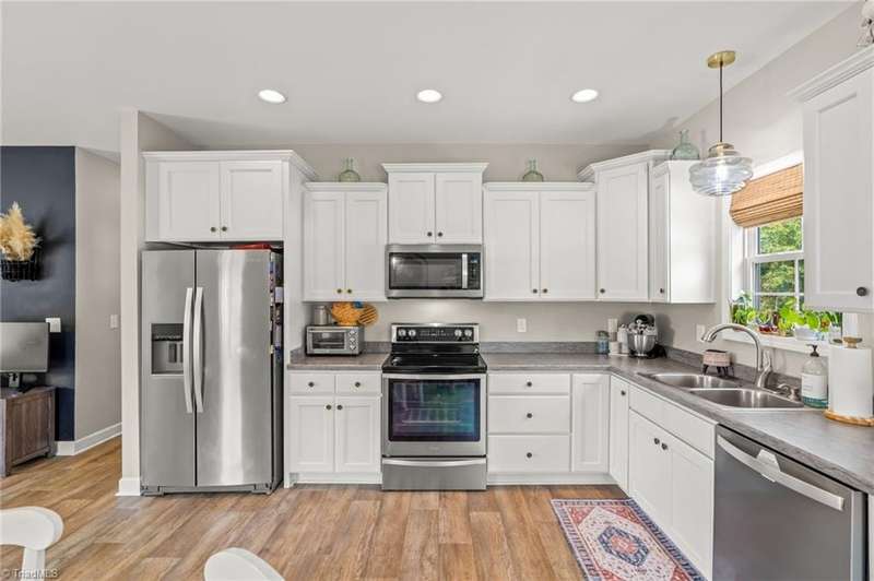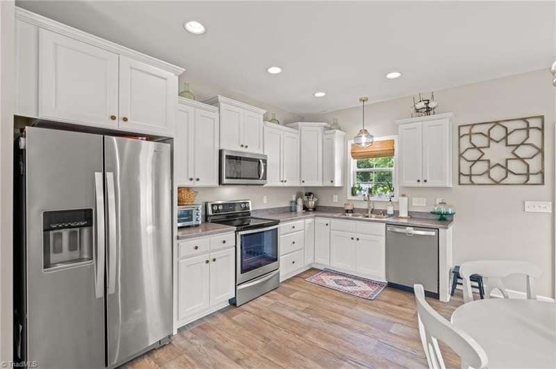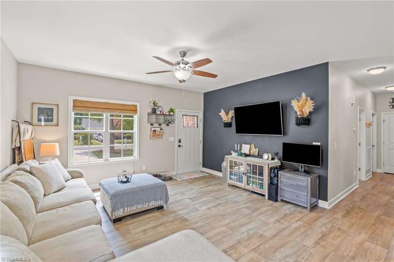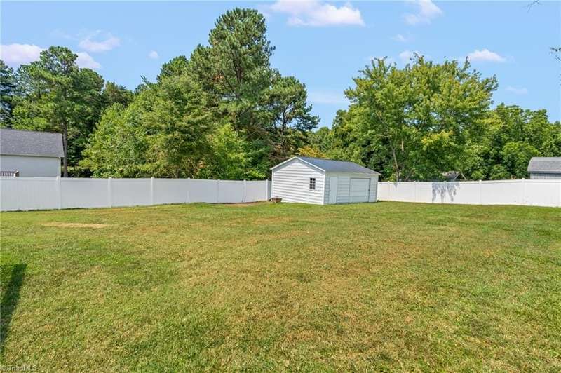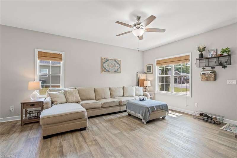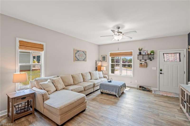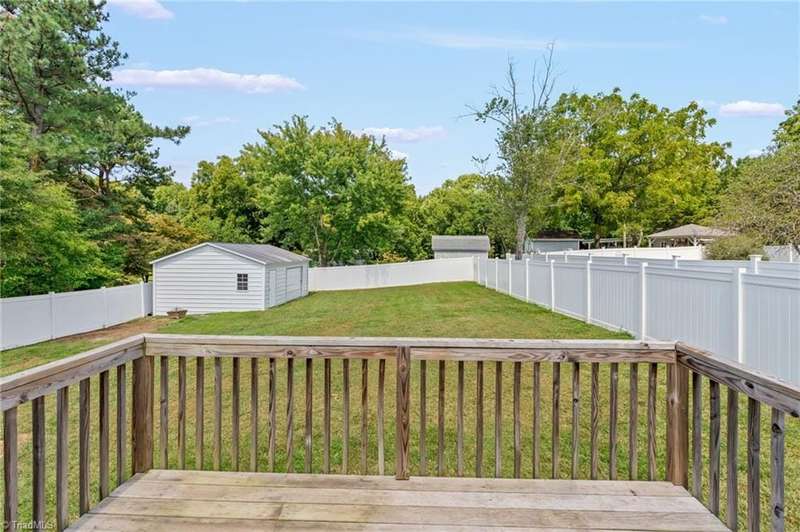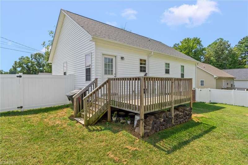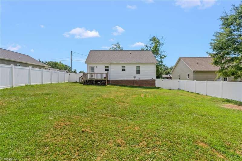 BACK ON THE MARKET- FINANCING FELL THROUGH. ALREADY FHA APPRAISED! Adorable, convenient and totally move-in ready. This one-level home with 9ft ceilings is ready for you! Built in 2018, this 3 bedroom 2 bath home has so much to offer. An open floor plan allows for easy living and seamless entertaining between the living, dining and kitchen areas, with tall ceilings & abundant windows, this light-filled space feels roomy & bright. Spacious primary suite features a tray ceiling, an en-suite bathroom, and a walk in closet. A shared bathroom in the hall has a tub/shower combo, convenient for guests & the 2nd/3rd bedrooms. Outside, sip your coffee on the covered front porch, grill out on the private back deck, or enjoy the large, flat backyard ready for play, pets, or a fire pit. Vinyl privacy fence & detached garage for your hobbies or storage! Incredibly convenient to the entire Triad & beyond.