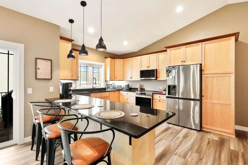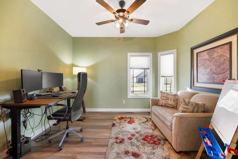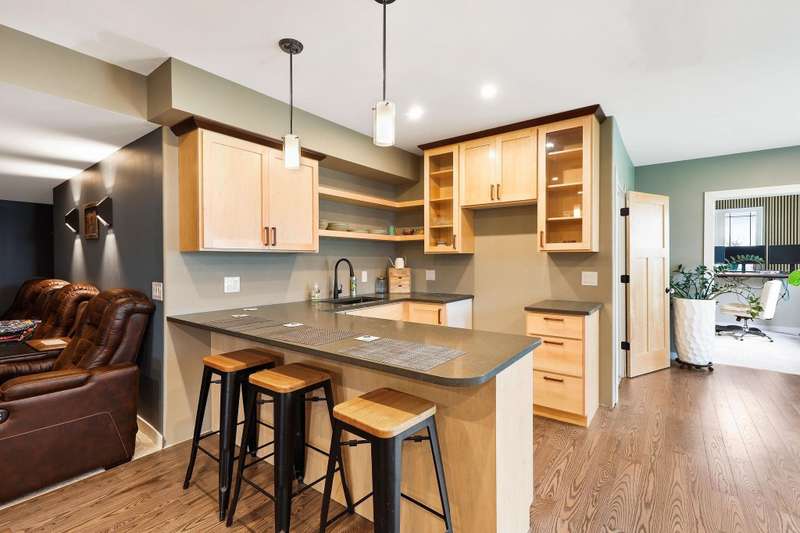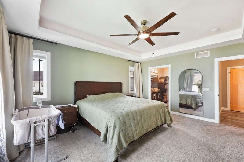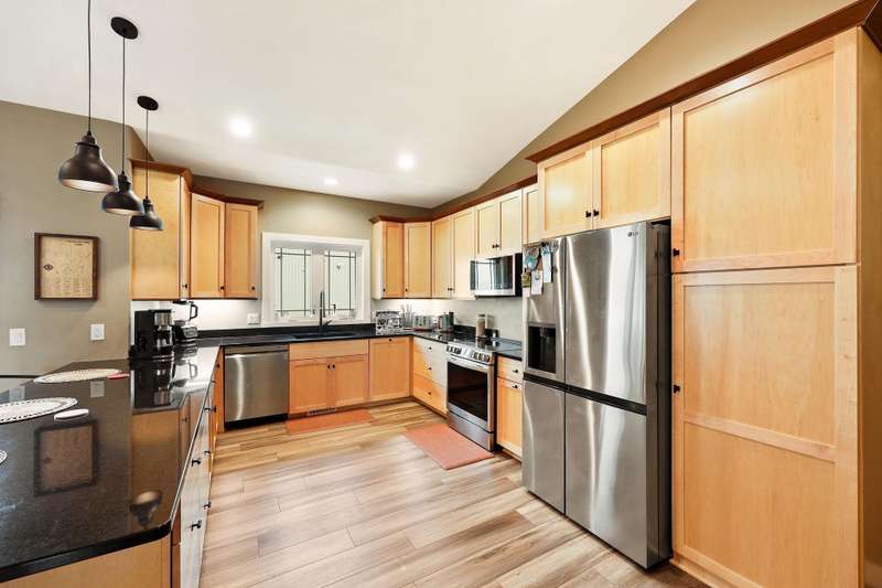 Like new with all the add-ons! This 2023 home offers modern living with 5 bedrooms and 3 full baths. The open main level includes a bright office off the entryway and a serene primary suite for a peaceful retreat. The fully finished walkout basement impresses with engineered hardwood floors, abundant natural light, a second full kitchen, theater room, two bedrooms, and flexible workout space. Enjoy a 3-car garage with epoxy floors and an owned, high-end solar system and battery backup storage for energy efficiency and savings. All electric appliances and an included electric vehicle charger complement the solar system. This beautiful home offers a unique blend of luxury, functionality, and sustainability in Waunakee’s sought-after Arboretum Village.