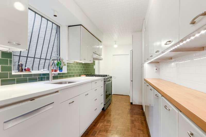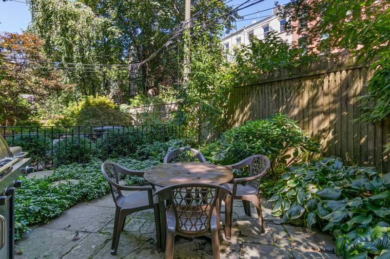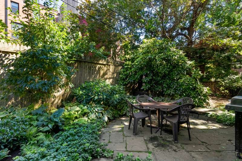 The oversized bedroom overlooks the tranquil garden The apartment has beautiful wood floors, original details, working shutters. Relax, dine, and grill in your lush private garden with an irrigation system. No pets, no smoking please.