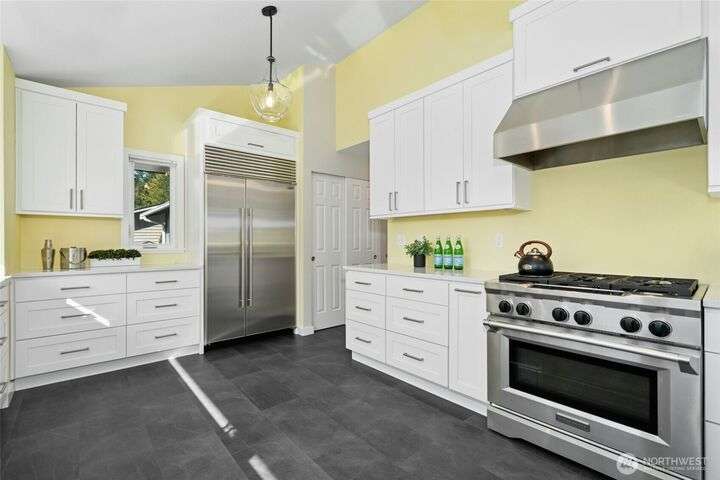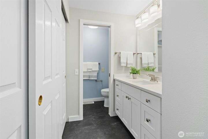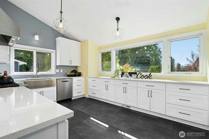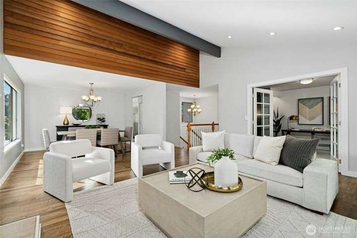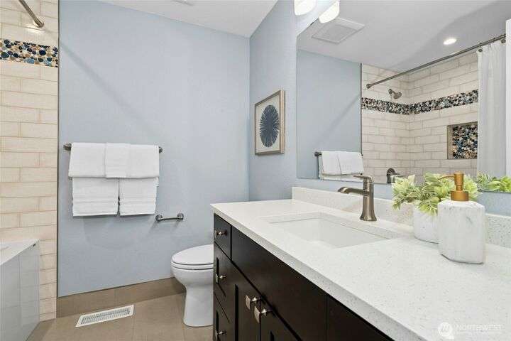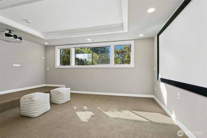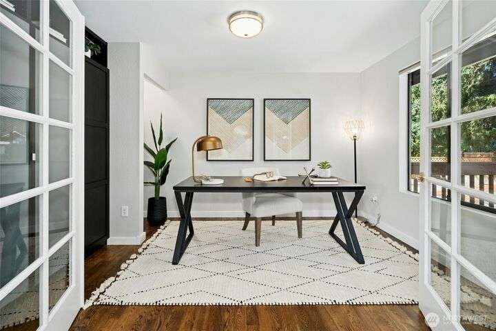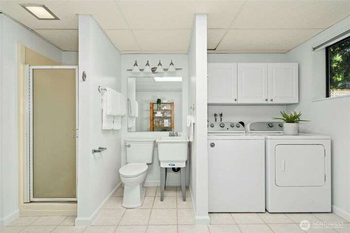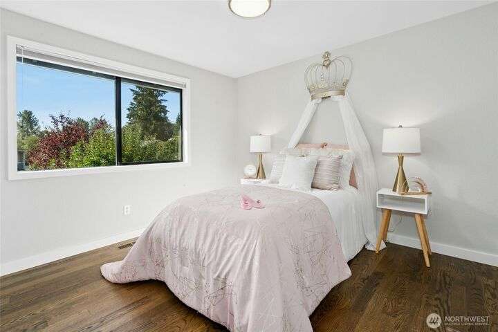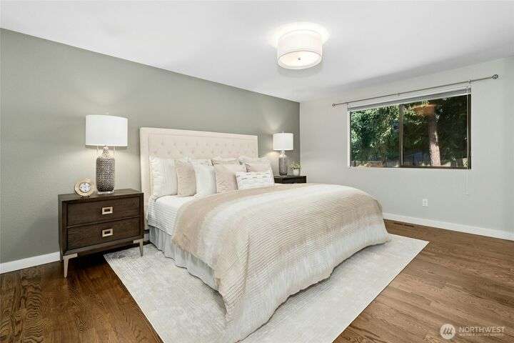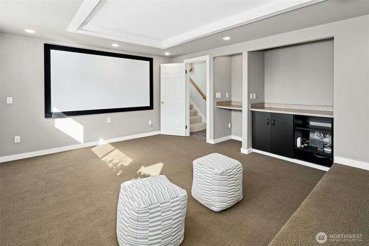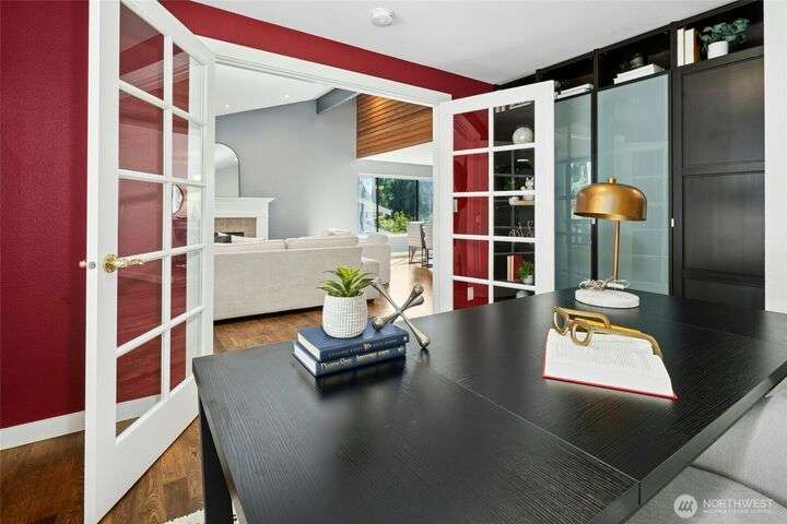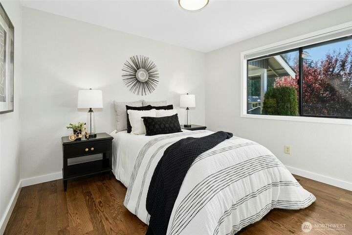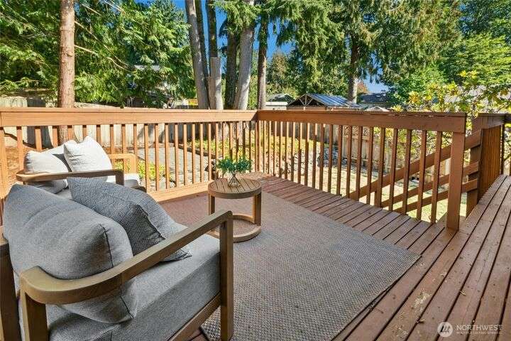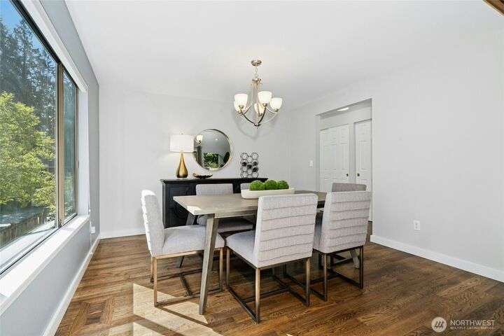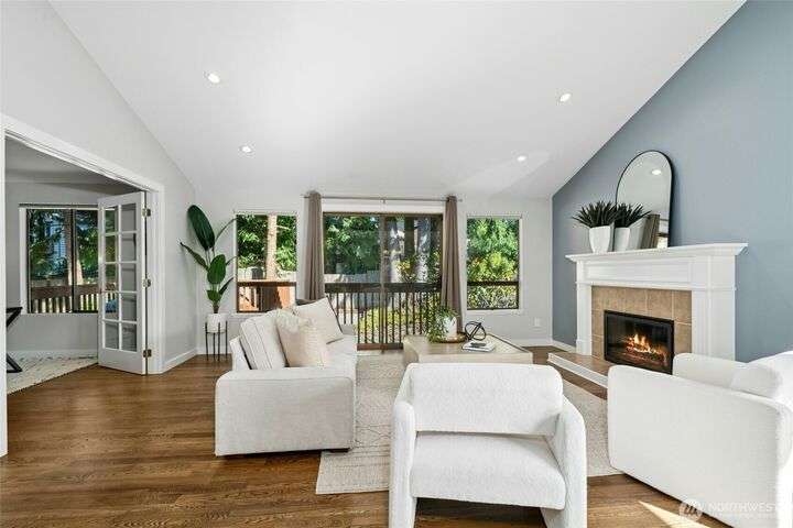 Set on a private, fenced lot in a desirable neighborhood, this updated 2,466 sq ft home offers both comfort and style. The main level features hardwood floors, a cozy fireplace, and a sunlit kitchen with modern upgrades, a pantry, and French doors opening to an office/bedroom. An updated hallway bath adds a fresh touch. The finished basement includes a laundry/craft space and a home theater with tiered seating. Recent improvements include a newer roof, high-efficiency furnace, and heat pump for year-round comfort. Conveniently located near award-winning schools, I-405/I-5, and Mill Creek Town Center.