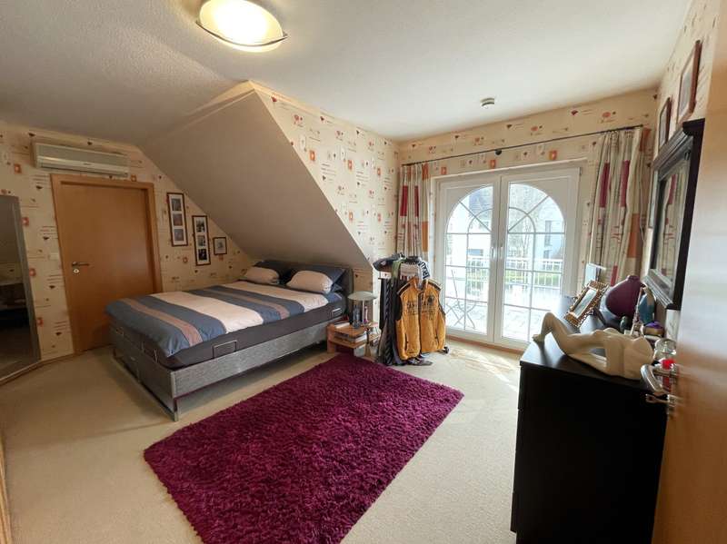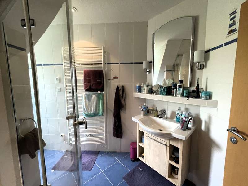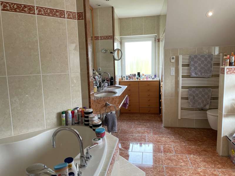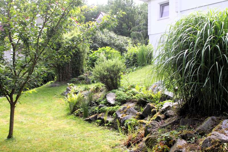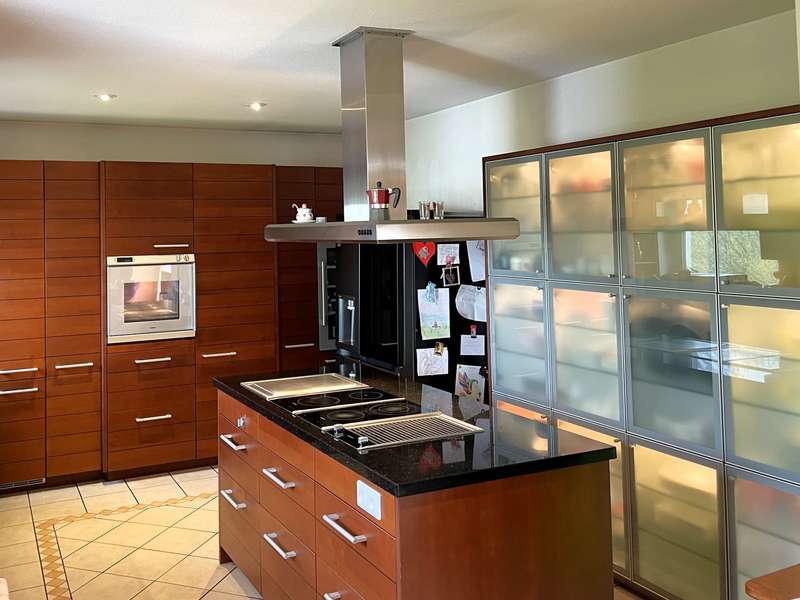 This prestigious property was very carefully planned and built to a high standard in 2004. The almost 300 m² of living space is divided into a spacious main apartment and a separate three-room apartment with an open-plan kitchen. The two areas can be connected with little effort. The attractive plot covers 1,250 m² and is located in a very quiet, upmarket residential area on a slight slope. The main apartment has an extremely spacious living area with a large open kitchen that leaves nothing to be desired with its high-quality fittings. With its cooking island and plenty of additional storage space, it offers a wonderful playground for the ambitious chef. A small kitchen counter forms a practical dividing element to the spacious living area. There is plenty of space for a long dining table, which can also accommodate a large group of family and friends. A great retreat for informal get-togethers and cozy hours is your living area in front of the cosy wood-burning stove. The open-plan living space is clearly structured, but at the same time is designed for a communicative get-together across the different areas. On the first floor of the main apartment, in addition to the main room, there is a spacious entrance area with checkroom, a guest toilet with shower, a spacious study and an attractively designed guest room. All rooms face the south-facing terrace and are very bright and friendly thanks to their large patio doors. A beautifully crafted wooden staircase connects the living area with the top floor. Here there are two well-designed children's rooms with plenty of space to play and develop, as well as a separate children's bathroom with shower. The master bedroom has access to the south-facing balcony. It offers plenty of space and is also very cozy due to the sloping ceilings. In combination with the dressing room and a separate large bathroom with bath and shower, you will find a very special personal retreat here where you can relax and unwind without a care in the world. The second, smaller apartment is located in the western part of the first floor. A spacious living area with an open-plan kitchen offers a modern yet cozy feel. Large patio doors lead to the shared south-facing terrace, making the room wide and bright. The small checkroom in the entrance area is particularly practical. Two good-sized bedrooms and a bathroom with shower and bath complete this little separate paradise. Both apartments have their own basement staircase. Due to the location on a slope, the well-constructed cellar rooms have partial daylight and can be used in a variety of ways. Separate access via the garden makes it possible to run a small practice, a law firm or a small business here, completely independently of the living areas and without affecting them. The building was constructed to the highest quality and very detailed documentation of the entire construction process is available. To ensure the quality of the work, an external controller and construction supervisor accompanied the construction and acceptance of the building. In addition, a market value appraisal was carried out immediately after completion of the building. The well-designed, high-quality garden offers everything the heart desires. From the pergola, which directly adjoins the western wing of the house, you can gaze out over the valley and round off the day with a glass of wine. Children can play and run around carefree on the area in front of the pergola, which is equipped with fall protection mats. In the lower part of the garden there are several terraces where you can relax, sunbathe or have a barbecue. The attractive and well-maintained plants make the gardener's heart beat faster. There are three parking spaces for your cars on the property, and the pergola can also be used as a carport. It is possible to cover the open spaces and create additional parking spaces.