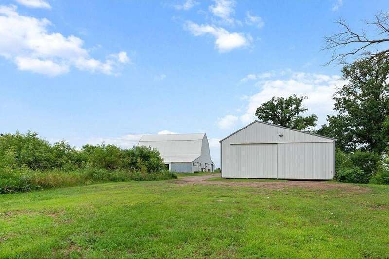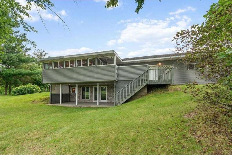 Welcome to this rare 80-acre property offering a blend of serene country living and incredible functionality! This spacious home features 4 bedrooms, 3 bathrooms, a walk-out basement, and a bright 4-season sunroom with an electric fireplace—perfect for enjoying panoramic views year-round. The home is ideally positioned to take in the natural beauty of the land, with 40 acres of tillable ground and 35 acres of mature woods—ideal for farming, hunting, or outdoor recreation. With solid bones and room to personalize, this property is a dream for hobby farmers, nature lovers, or anyone seeking privacy and space. Just minutes from town, but a world away from the hustle and bustle—don’t miss this unique opportunity!