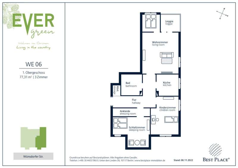 "Out of the city, off into the countryside" - this dream of many is fulfilled with a flat at Evergreen in Lichtenrade. Eleven apartments are for sale here, spread over four floors. All flats have two to three rooms and living areas between approx. 59 m² and 83 m². The balconies and loggias also face the quiet garden side, guaranteeing every resident in Evergreen a beautiful, sunny open view.