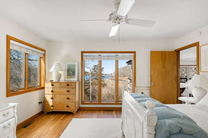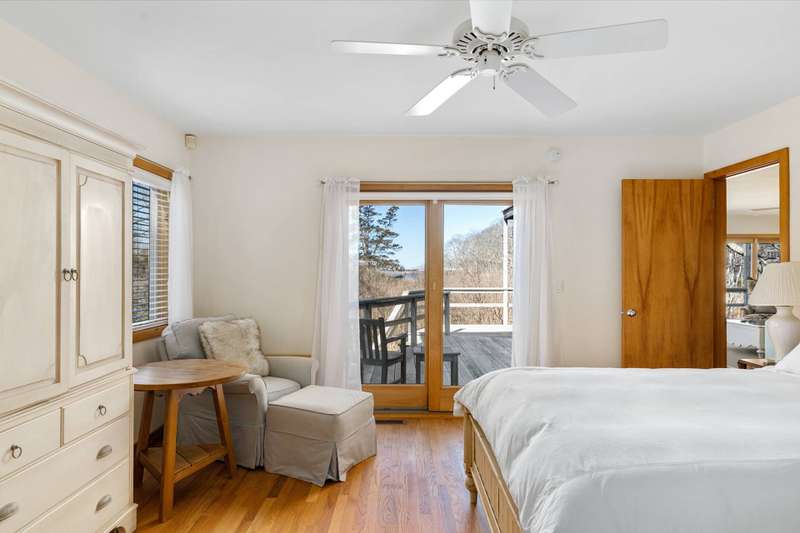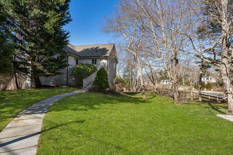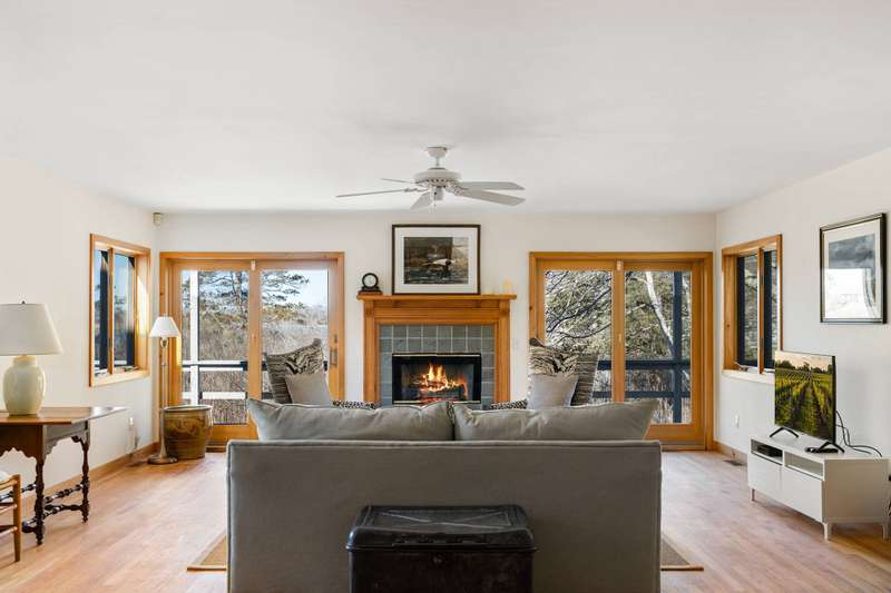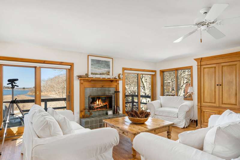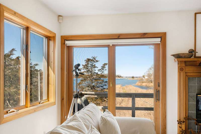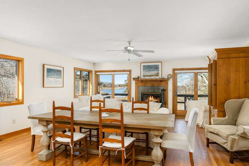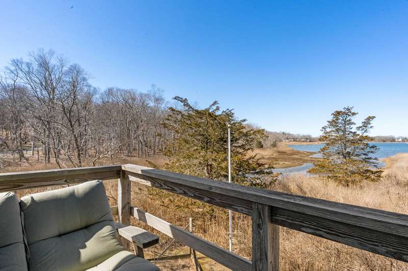 RP240645 - Enjoy tranquil water views and sunsets daily from this contemporary four bedroom, three and one half bath home. Open kitchen, living and dining area with cozy fireplaces make this a wonderful place to to entertain your summer guests. Take advantage of living on the water, one is able to moor a boat in Bullhead Bay in the summer with a permit. Located near 4 world class golf courses, Wolf Swamp Sanctuary and Scallop Pond Preserve this home is in a quiet and natural area to be enjoyed every day.