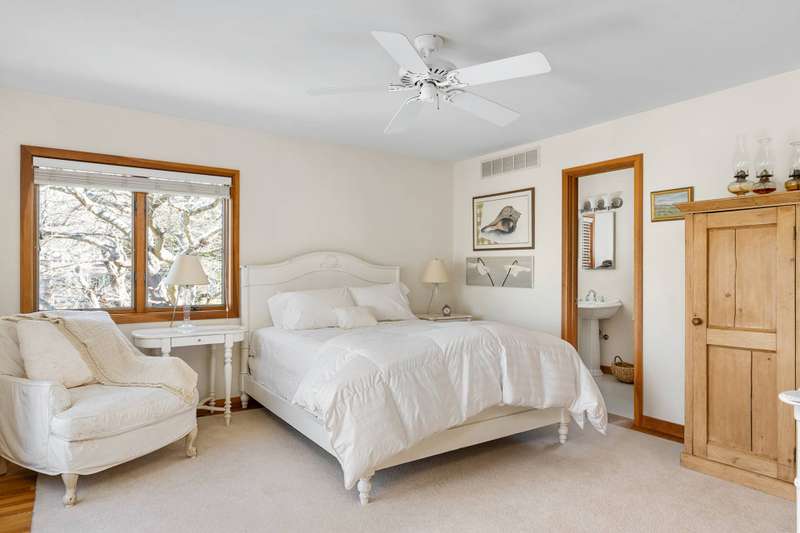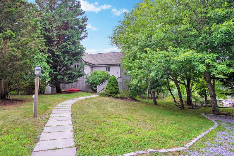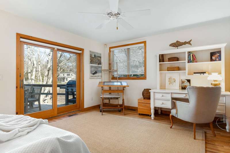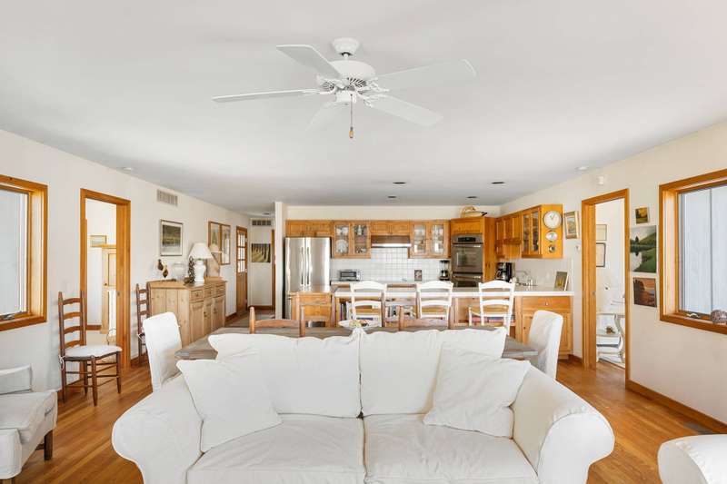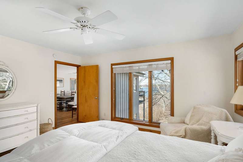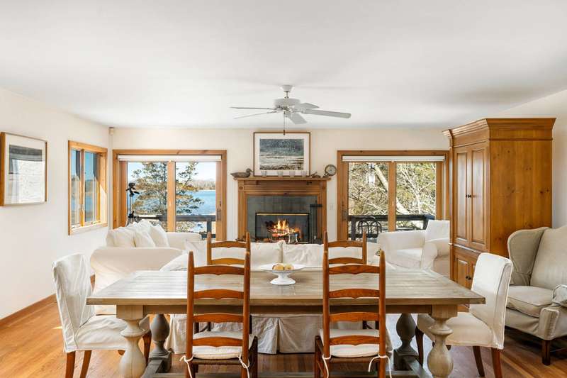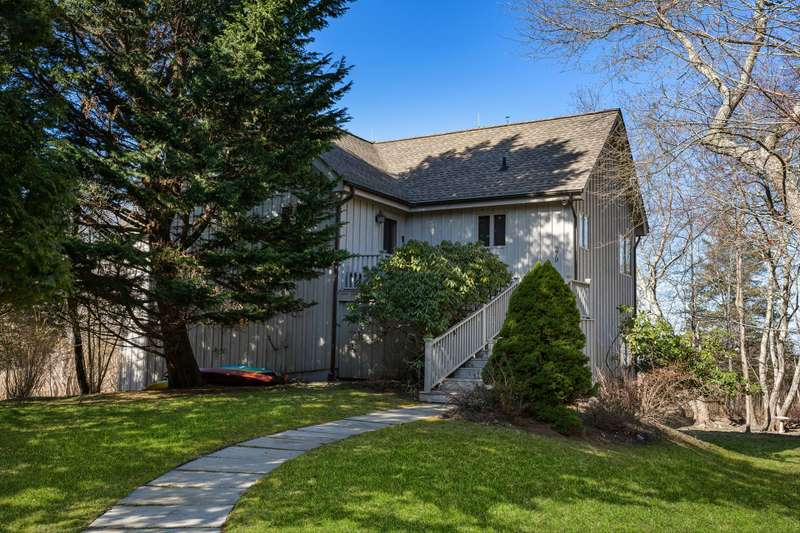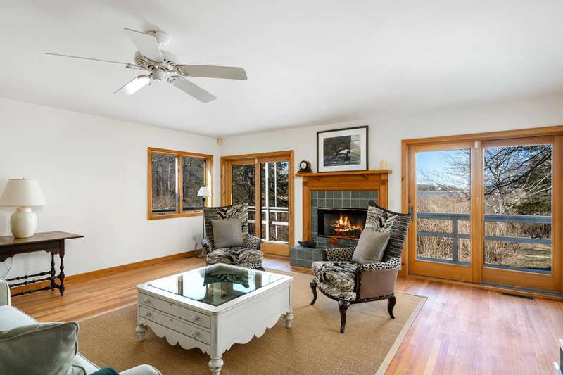 RP240645 - Enjoy tranquil water views and sunsets daily from this contemporary four bedroom, three and one half bath home. Open kitchen, living and dining area with cozy fireplaces make this a wonderful place to to entertain your summer guests. Take advantage of living on the water, one is able to moor a boat in Bullhead Bay in the summer with a permit. Located near 4 world class golf courses, Wolf Swamp Sanctuary and Scallop Pond Preserve this home is in a quiet and natural area to be enjoyed every day.