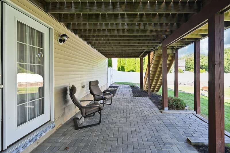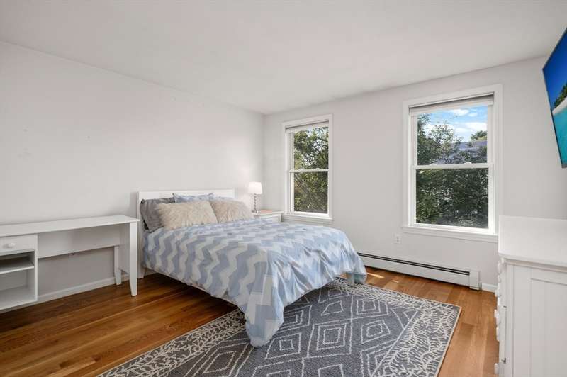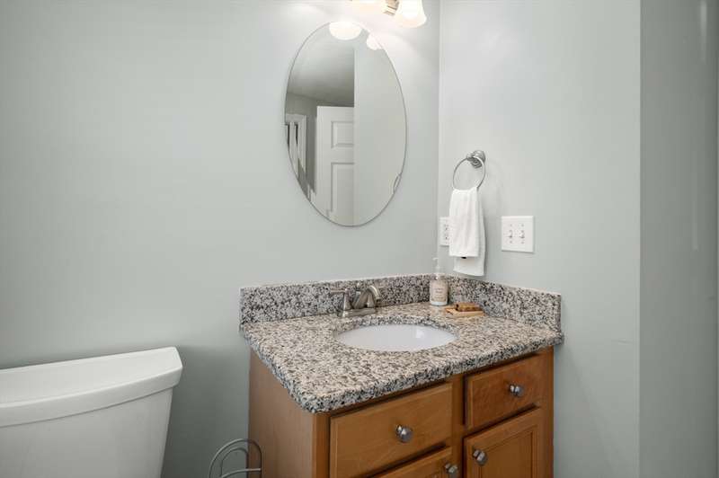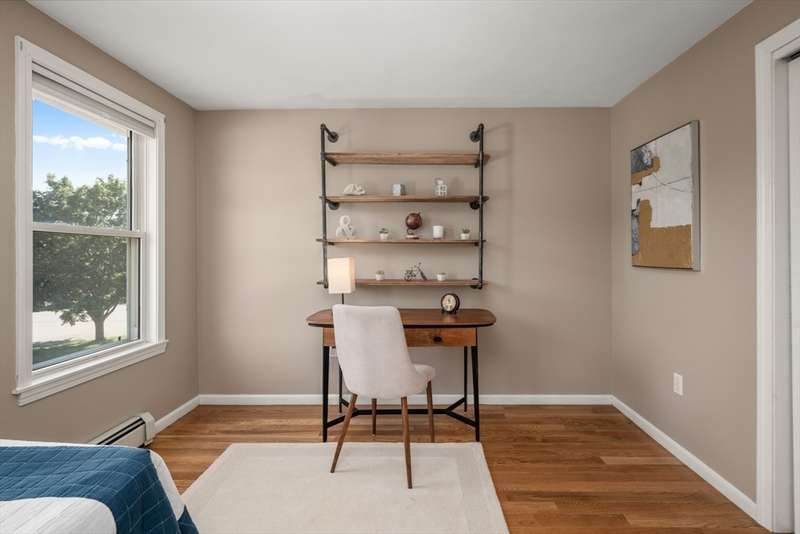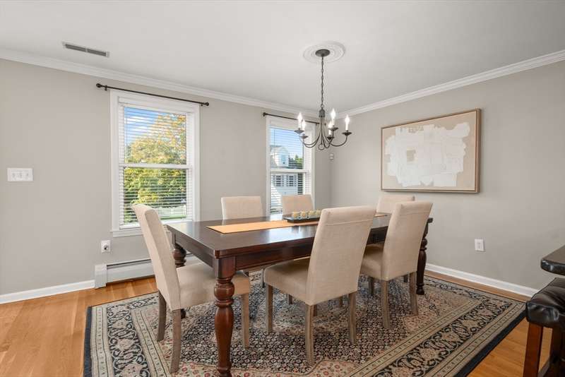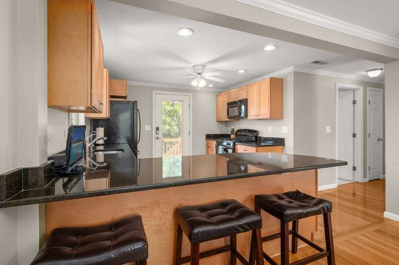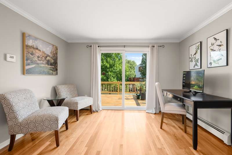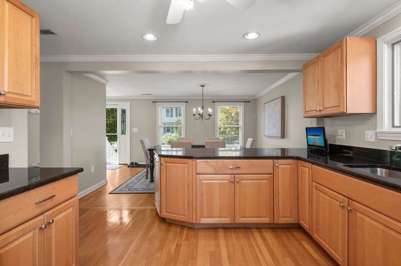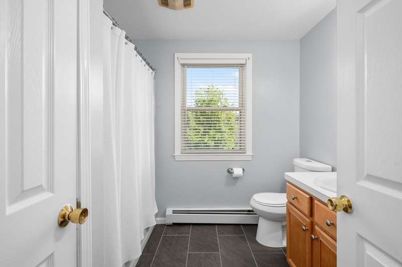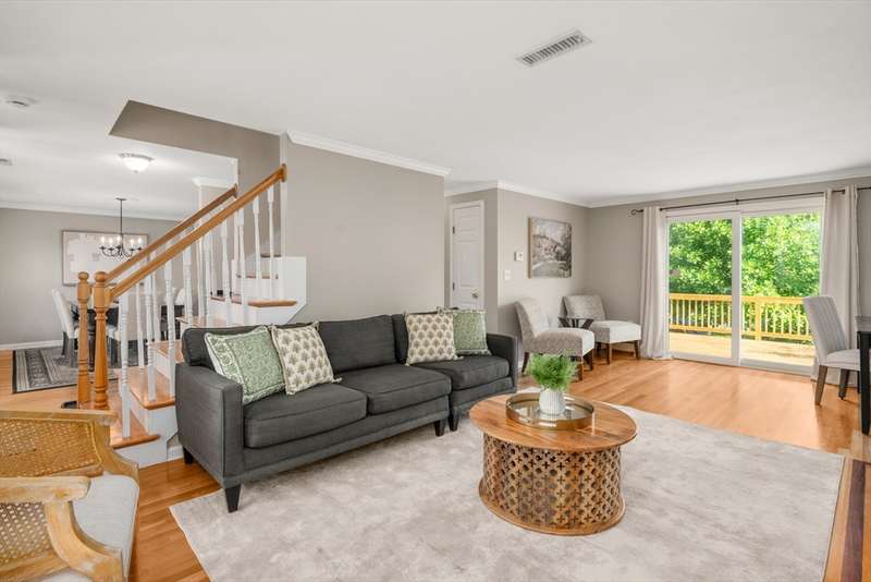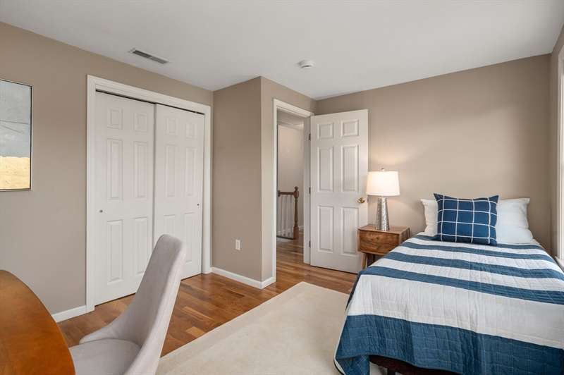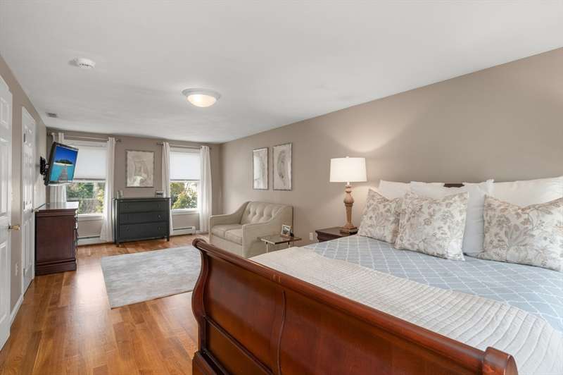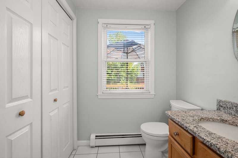 Simply stated & sophisticated colonial in one of East Methuen's most sought after locations! This stunning 3-bedroom, 2000 sf home offers instant appeal with a thoughtful open floor plan and designer interior vibe. The well designed kitchen features warm maple cabinetry and contrasting stone countertops flowing seamlessly to the dining area. Gleaming hardwood floors (new on stairway and second floor), lead to an expansive fireplaced living room with sliders to the NEW 14x34 deck. The bright finished lower level bonus room with French doors to paver patio is perfect for entertaining, home office or just cozy quiet space. Upstairs, the oversized primary suite includes walk-in closet and sitting area, plus two additional bedrooms and spacious bath. Outdoors is a covered sitting area beneath deck overlooking the fenced green space and NEW HVAC installed 8/25. Commuter-friendly location with major highway access - looking for space and value? This move-in ready gem checks all the boxes!