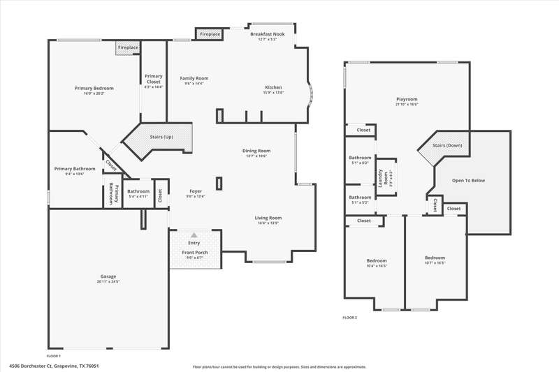 Prepare to be impressed Nestled on a quiet cul-de-sac in the sought-after Glade Crossing subdivision, this home offers incredible drive-up appeal with a front yard statement tree and terraced flagstone retaining wall flowerbeds. This home has been thoughtfully enhanced for modern living, boasting refreshed paint throughout, updated carpet and LVP flooring. The property provides a spacious layout including a luxurious, private main-level primary suite with dual sinks, a jetted tub, and separate shower. Entertain easily in the dual living areas and enjoy the ambiance of two wood-burning fireplaces, while the gourmet kitchen features an island, stainless steel appliances, double oven and granite countertops. The second floor includes two bedrooms and a large loft for maximum flexibility. The backyard is a true retreat, featuring a magnificent 3-year-old PebbleTec pool, a separate hot tub, an extended outdoor living space with automated shades, low-maintenance artificial turf and a separate storage shed. The 2-car garage is oversized with a storage closet and workshop area. The front exterior is beautifully illuminated by Gemstone Lighting. Located on a corner lot, this Grapevine gem is highly desirable, with an exceptional location that is close to parks, highways, entertainment, DFW Airport, Baylor Scott and White Hospital and is walking distance to Grapevine Elementary School. Dont let this one pass you by!