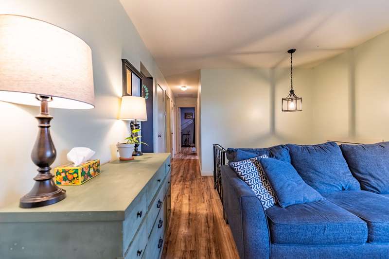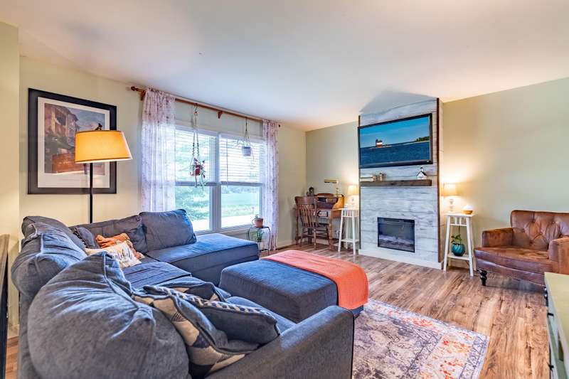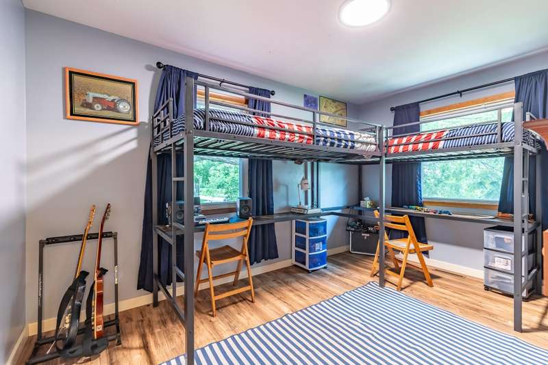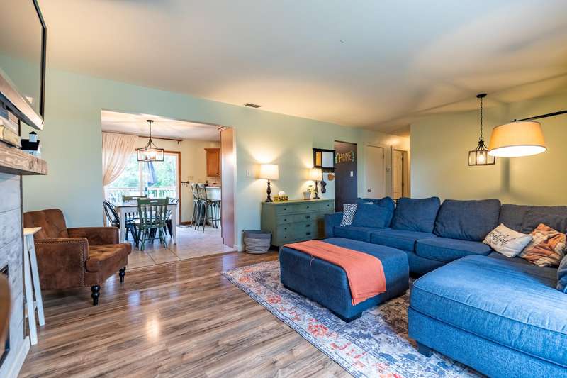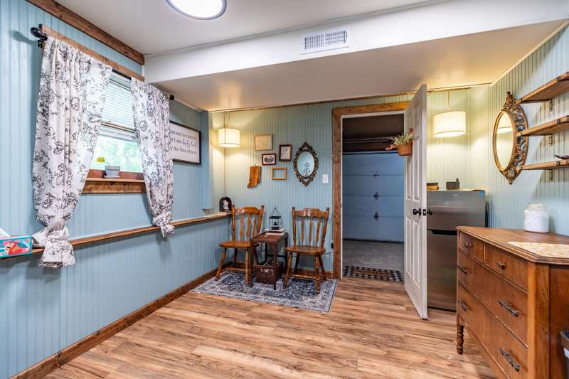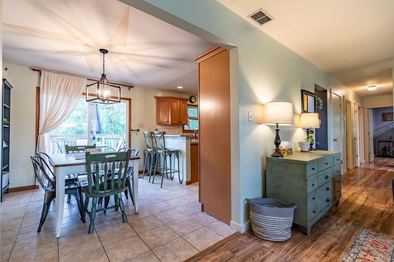 REDUCED!! Updated 3 BR/1.5 BA Bilevel with a large totally fenced back yard, mature trees, raised garden beds and a tree swing. Fireplace in living room. The furnace, central air and hot water heater were all replaced in 2019. The septic was pumped in 2024. Enjoy the tranquility of country living while you view the farm across the street. Easy access to I-65 or Route 10 to Illinois. Low taxes. Seller will return the salon and utility room back to a garage with a good offer.