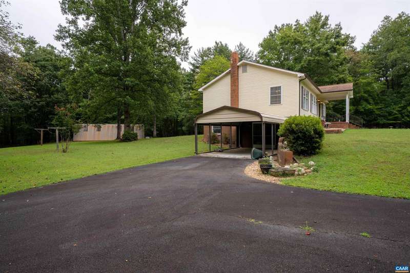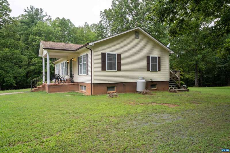 LOCATION, LOCATION, LOCATION! Ideally situated between Charlottesville and Richmond—and just 5 miles from Rt. 64—this property offers the perfect blend of country living and city convenience. Built in 1990 and perfectly situated on 26 beautiful acres teeming with wildlife. A paved circular driveway leads you to multiple outbuildings, including a spacious 30x48 detached building and an attached carport—perfect for hobbies, storage, or a workshop. Step onto the charming front porch and enter a warm, inviting interior featuring hardwood floors, and a traditional layout with 3 bedrooms, 2 full bathrooms, a kitchen and dining room, plus additional finished space on the lower level—ideal for a family room, home office, or guest area with a 3rd full bath. This home has solid bones and endless potential. Home is in need of some TLC and is being sold "As is". Home inspections will be for informational purposes only. Whether you're dreaming of a peaceful homestead, a weekend getaway, or a property with room to grow, this is a rare chance to own a slice of Virginia countryside.