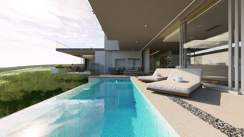 **CONSTRUCTION HAS OFFICIALLY STARTED** This architectural gem offers a harmonious blend of contemporary design and breathtaking oceanfront views. The soon-to-be-built double-story home is thoughtfully designed to provide an exceptional living experience, featuring four spacious en-suite bedrooms along with a guest bathroom for convenience. Large sliding doors throughout the home create a seamless flow between indoor and outdoor spaces, while the ground floor boasts a stylish en-suite bedroom opening onto a tranquil patio. The open-concept kitchen and living areas extend effortlessly into an outdoor entertainment area with a sparkling pool, ideal for relaxation or hosting guests. Upstairs, three additional en-suite bedrooms each enjoy private balconies with stunning ocean vistas, alongside a cozy pajama lounge perfect for quiet family moments. Located near the clubhouse, this property combines luxury with practicality, offering premium finishes and dual garages, all set in one of Pinnacle Point's most sought-after locations. --- **Highlighted Features:** - Four en-suite bedrooms complemented by a guest bathroom. - Ground-floor bedroom with patio access. - Open-plan kitchen and living areas connecting to a poolside entertainment area. - Upper-level bedrooms with private ocean-view balconies. - Pajama lounge for cozy family time. - Premium finishes throughout. - Two garages for ample storage and convenience. - Close proximity to Pinnacle Point clubhouse. ESTATE FEATURES: Pinnacle Point Estate has won gold for the second consecutive year as the Most popular International Golf Course at the 19th annual Golf Journal Travel Awards for 2020, and the Mossel Bay municipality has won the best municipality in South Africa with its great service delivery. Mossel Bay offers great hospitals, schools, malls, blue flag beaches and much more. The estate is a short 30-minute drive from George Airport. 2 Beaches, Spa, tennis courts, gym, driving range, swimming pools, Clubhouse, Pro Shop and restaurant. The well-known St Blaize hiking trail and an unbelievable experience with a trusted guide to the world-renowned Middle Stone Age archaeological cave site, The Point of Human Origins * 24 hour security including CCTV cameras and guard house. * Award winning golf course and restaurant. * La Vita Spa – indoor heated swimming pool, jacuzzi, sauna, beauty and nail salon with hair studio. * Gym, tennis court and driving range.