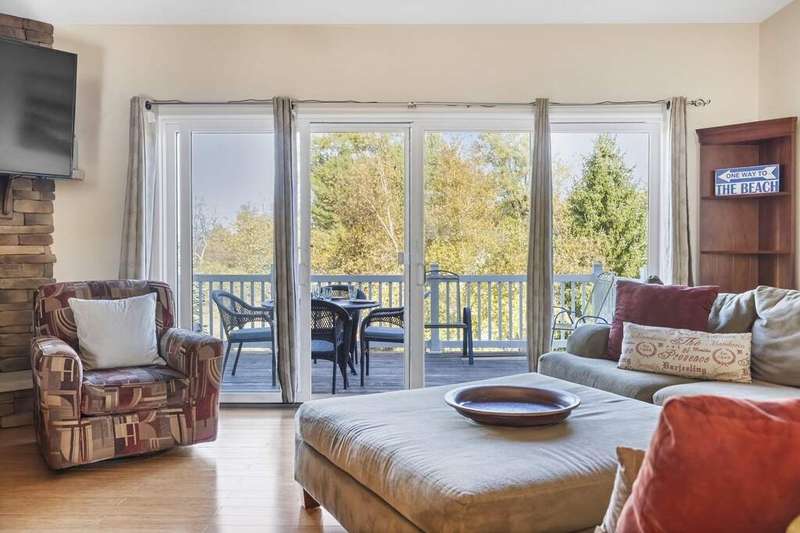 Modern Comfort | An Inspired New Buffalo Retreat | This inviting 1,837 sq ft condo is thoughtfully designed across three levels. A striking floor-to-ceiling stone fireplace anchors the main living area, creating a warm and welcoming atmosphere that flows seamlessly into the open kitchen and dining space. Granite countertops, stainless appliances, and rich hardwood floors complete the timeless aesthetic. With three bedrooms and three full baths, the layout offers flexibility and privacy, including two ensuite retreats with private balconies. The rooftop deck is a standout feature-an expansive outdoor living space with room to lounge, dine, and take in the surrounding views. Enjoy a truly low-maintenance lifestyle with access to an indoor pool, spa, and fitness center, all within a short distance of downtown New Buffalo's shops, restaurants, and Lake Michigan's shoreline. A place designed for ease, light, and modern living in the heart of Harbor Country!